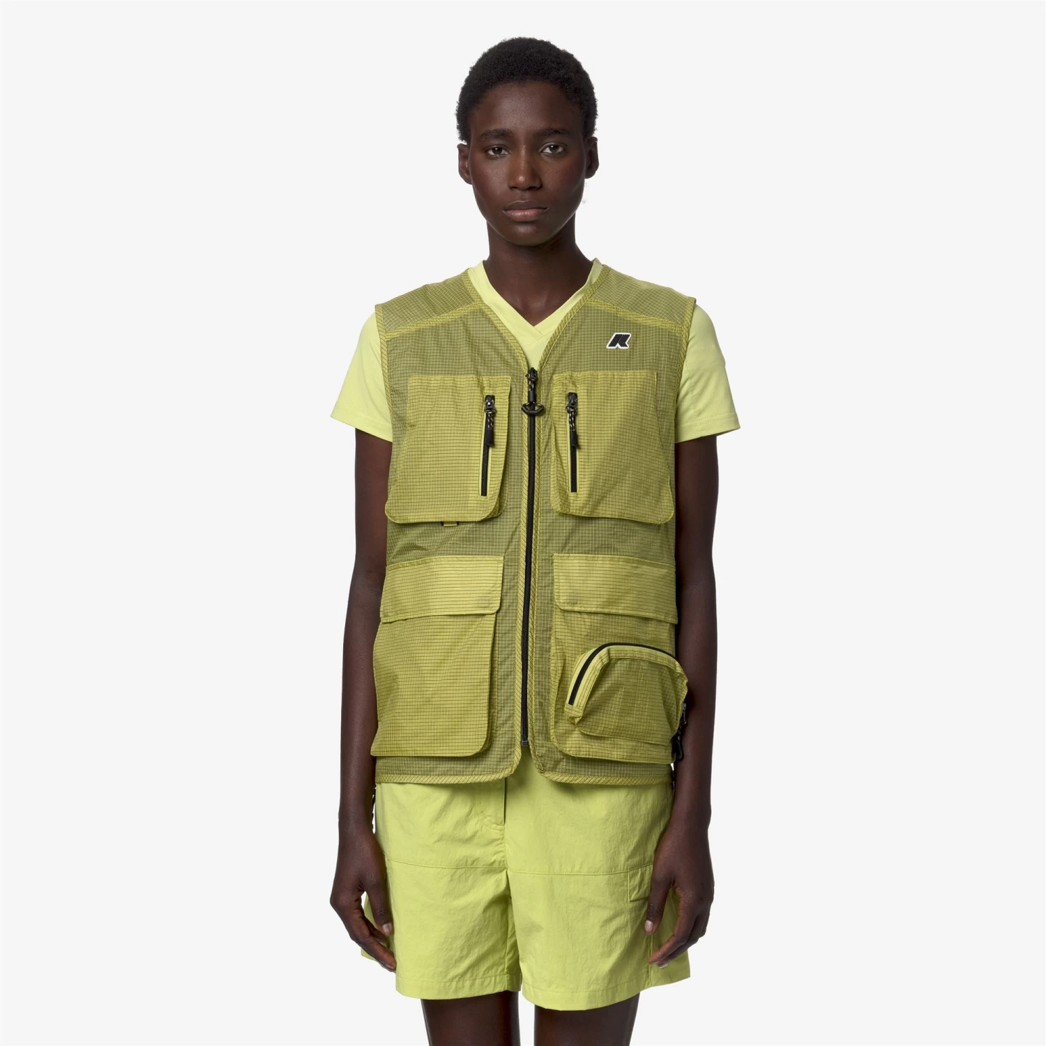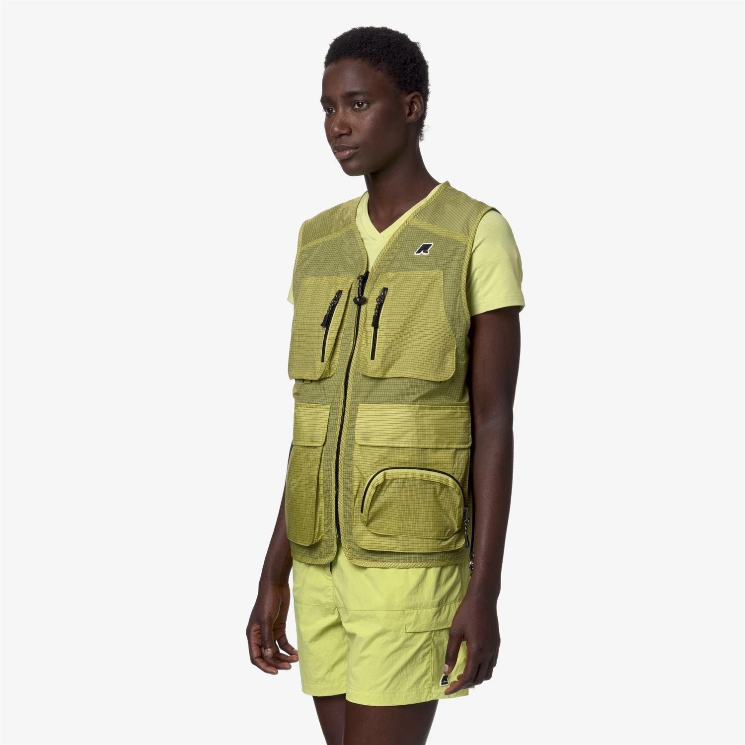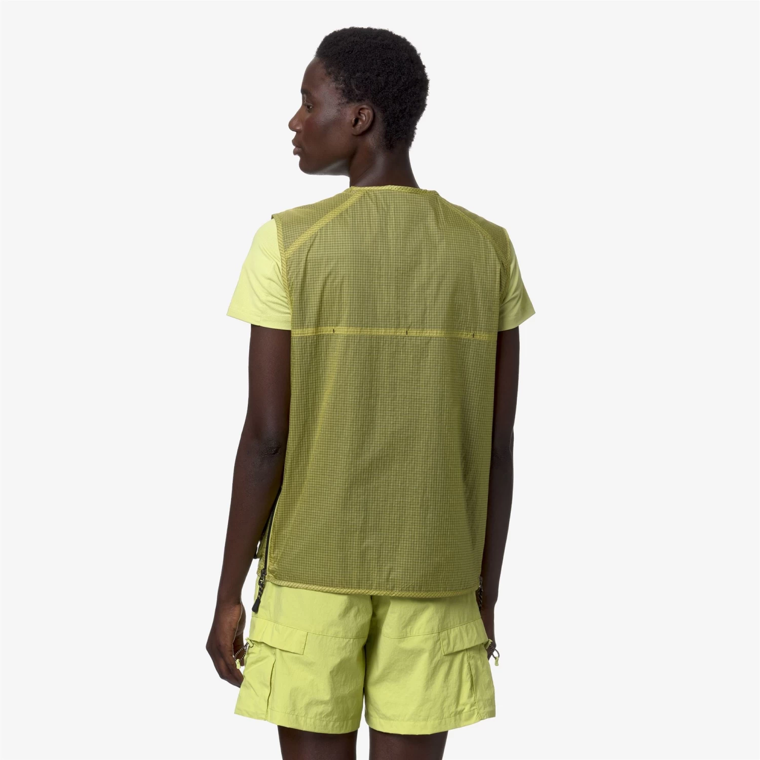Allos is a vest inspired by hiking style and the concept of layering in sports and fashion. This garment is waterproof and windproof, made from stretch ripstop fabric, with a regular fit that allows optimal ease of movement and ventilation during outdoor activities. The attention to functional details is underlined by the zip closure and the practical pockets, ideal for storing small essential objects during outdoor outings.