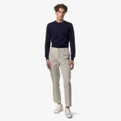 Bran is a men’s gabardine trouser with a versatile look and stretch fit. Comfortable and essential for the warmer seasons, these pants feature a straight-leg chino design with side pockets and an elasticated waist with a zip and button fastening.