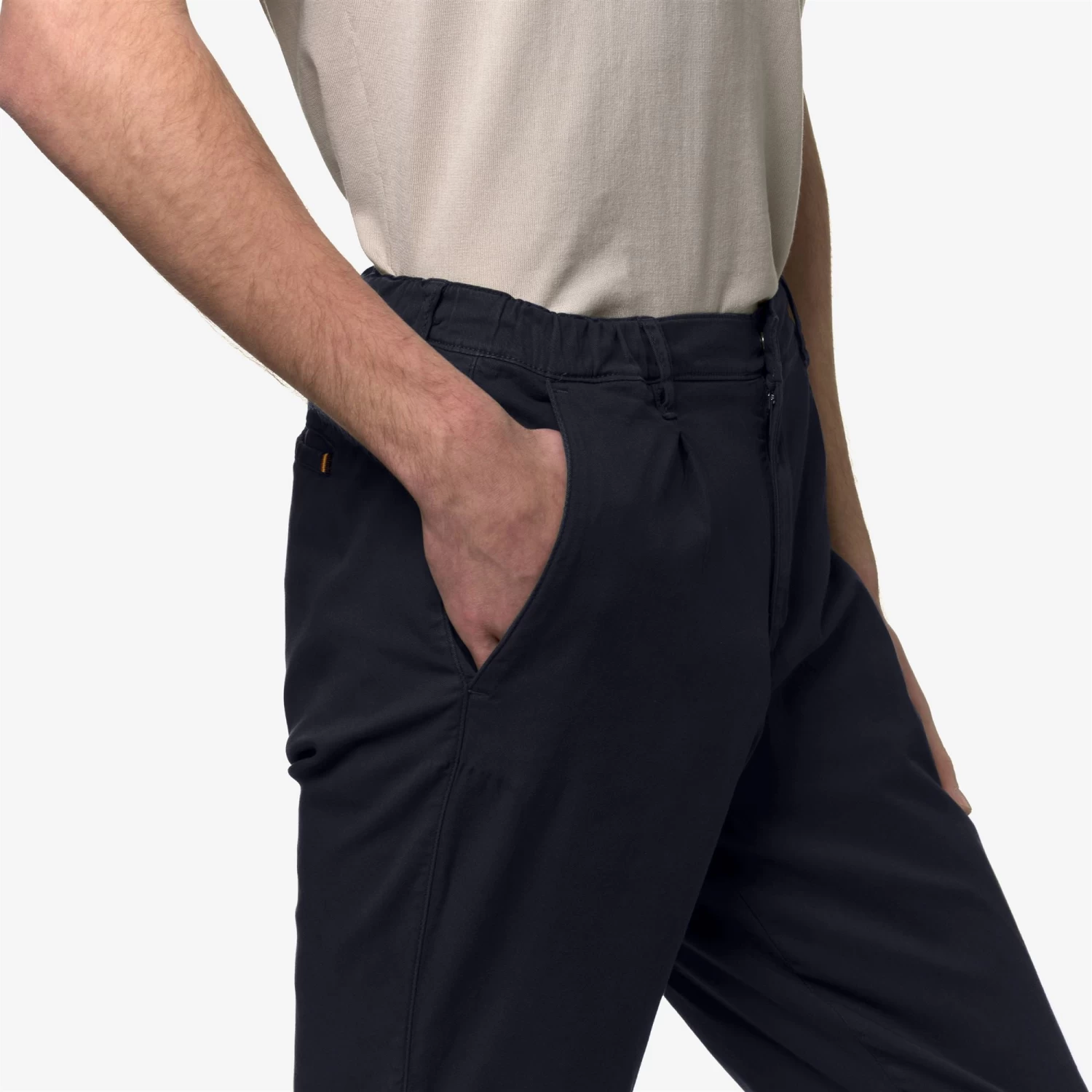 Bran is a men’s gabardine trouser with a versatile look and stretch fit. Comfortable and essential for the warmer seasons, these pants feature a straight-leg chino design with side pockets and an elasticated waist with a zip and button fastening.