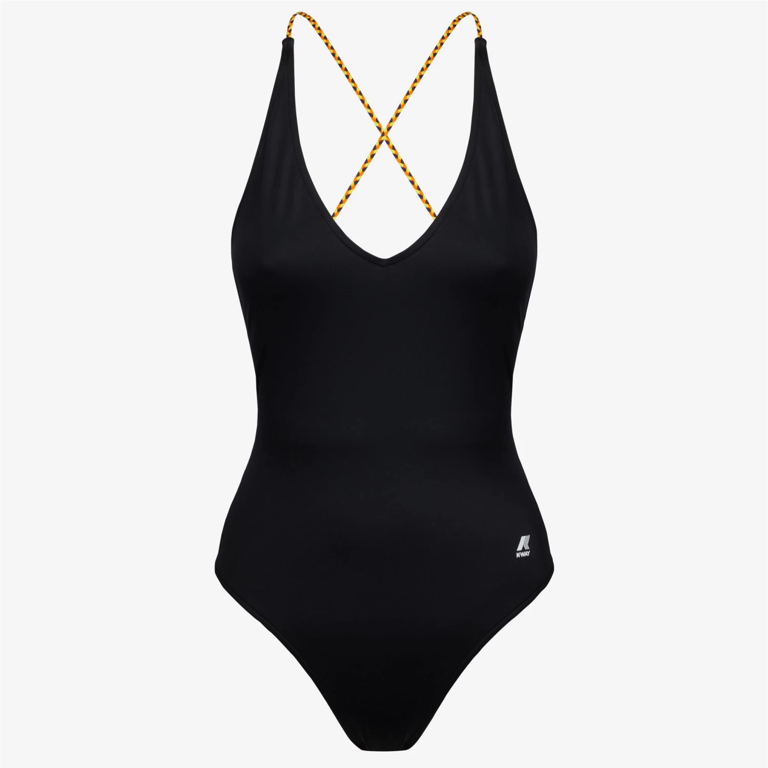 The Crosel one-piece swimsuit flaunts a sleek, feminine silhouette with a V-neck and side logo detail. The back cross-over straps are made from braided fabric in K-Way’s iconic colours.
