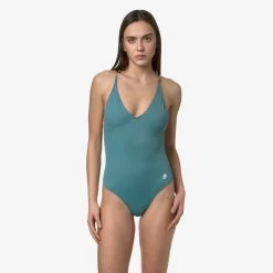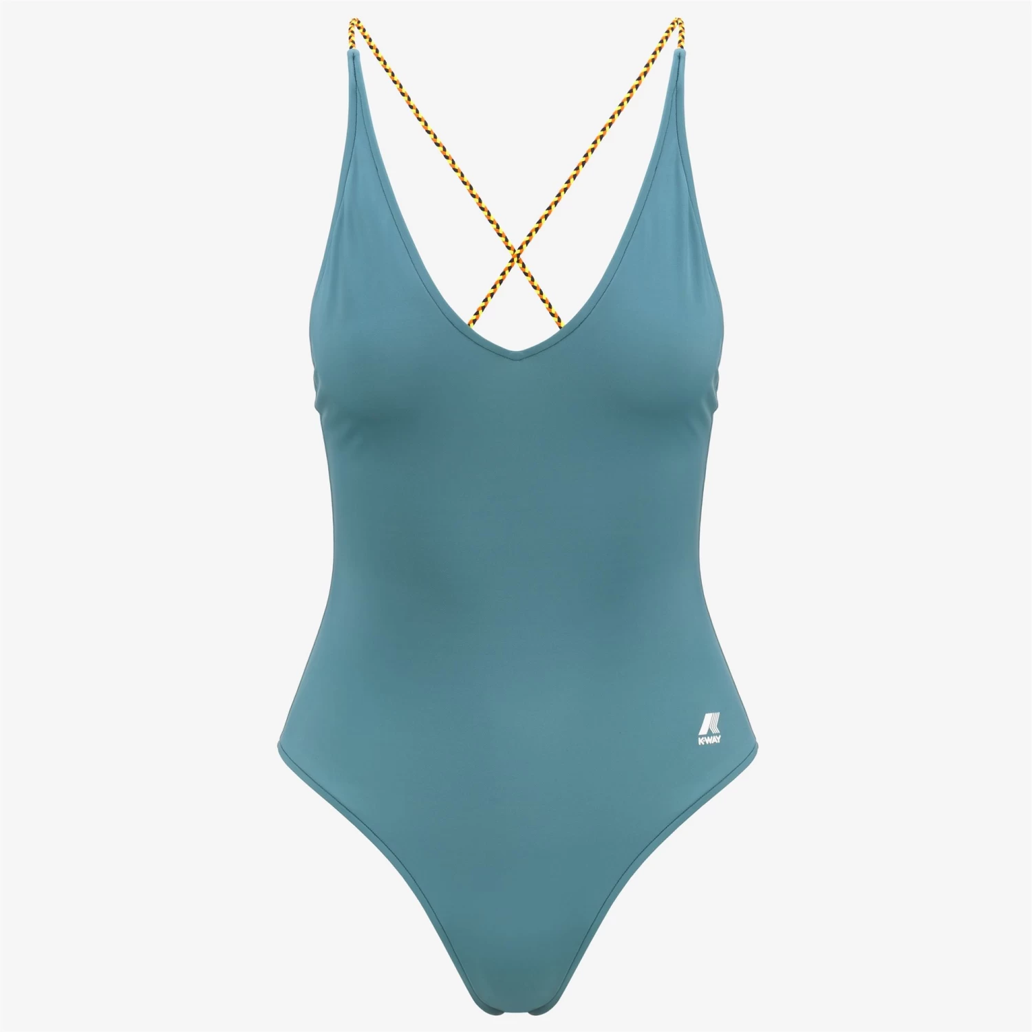 The Crosel one-piece swimsuit flaunts a sleek, feminine silhouette with a V-neck and side logo detail. The back cross-over straps are made from braided fabric in K-Way’s iconic colours.