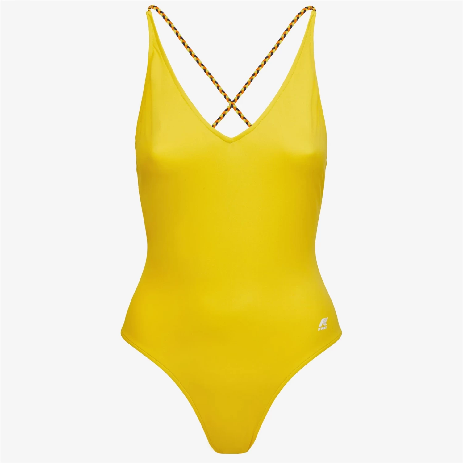The Crosel one-piece swimsuit flaunts a sleek, feminine silhouette with a V-neck and side logo detail. The back cross-over straps are made from braided fabric in K-Way’s iconic colours.