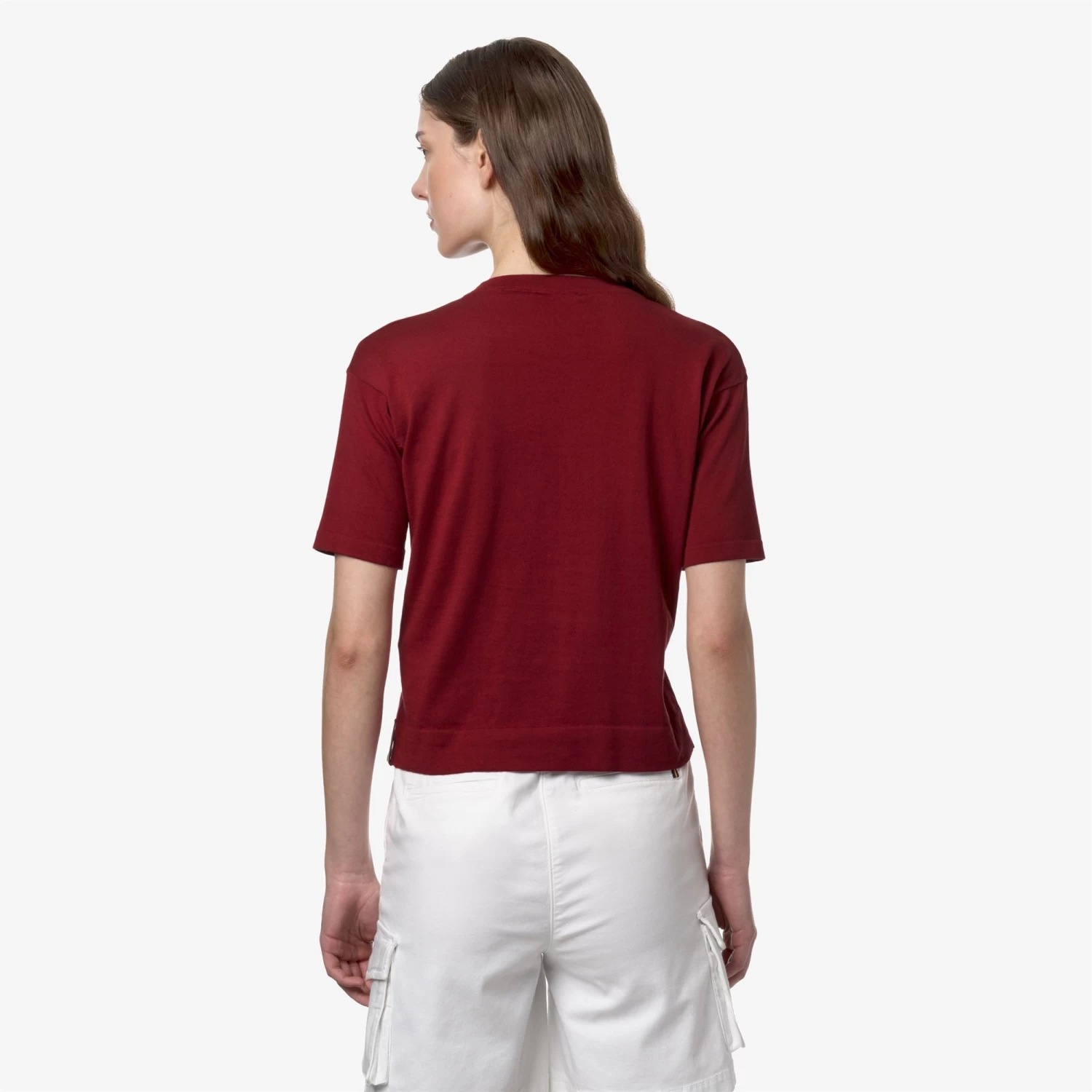 Esmer is a women’s short-sleeve crewneck sweater with a classic design and a regular fit, crafted from pure Egyptian cotton yarn known for its soft and smooth texture, which reduces pilling. The sweater is characterized by its timeless design featuring a crew neckline, ribbed sleeve cuffs, and a ribbed bottom hem.