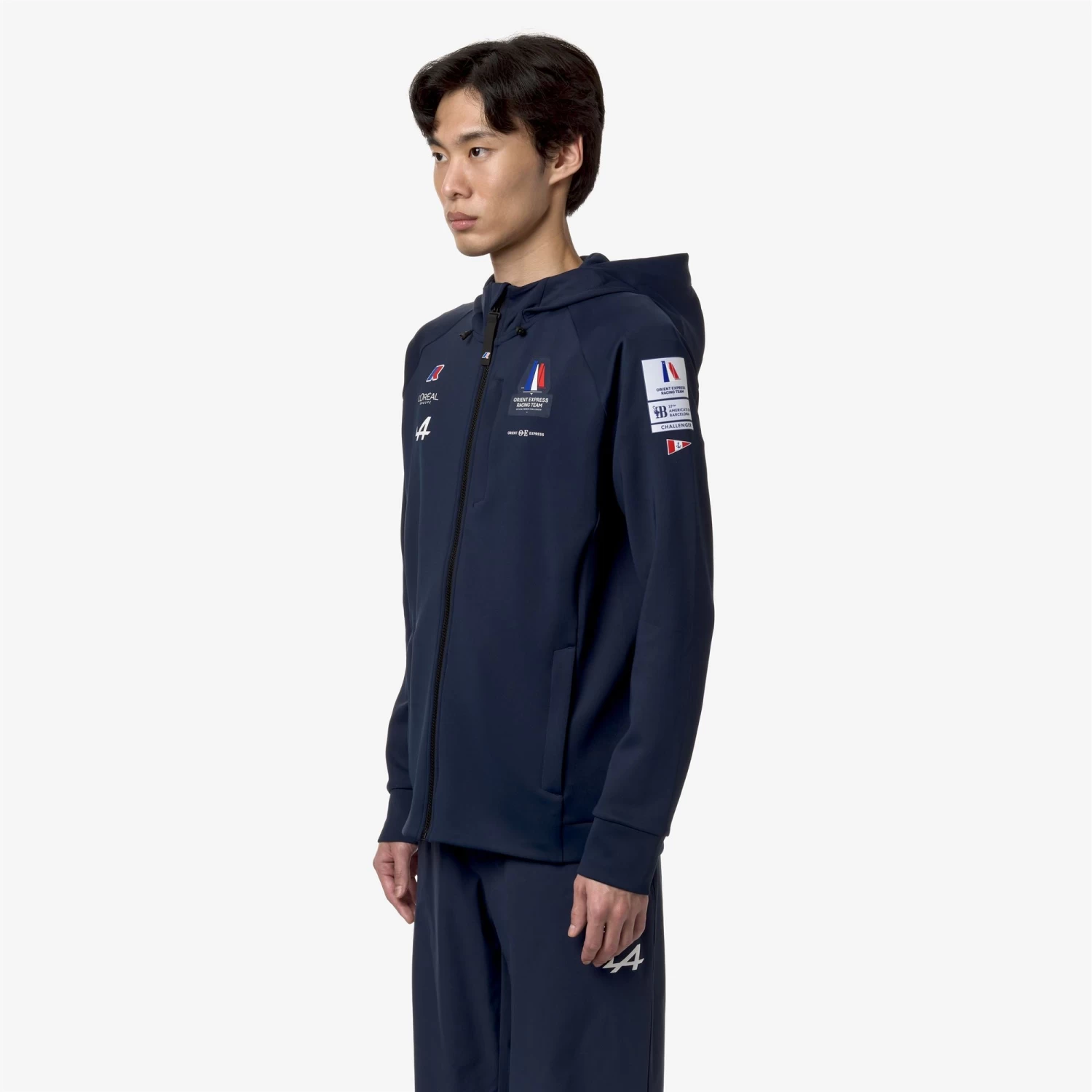 ETAPLES ORIENT EXPRESS TEAM AC is the SLIM FIT men’s fleece celebrating the sponsorship of the Orient Express Racing Team for the 37th America’s Cup, perfect for experiencing every daily adventure with style. Made from heavy stretch interlock fabric, with an adjustable hood and front zip opening. Side pockets and heart point pockets. The cuffs and bottom edge are made of stretch fabric. External logos applied include Orient Express, sponsors, and America’s Cup. K-Way logo applied in silicone.