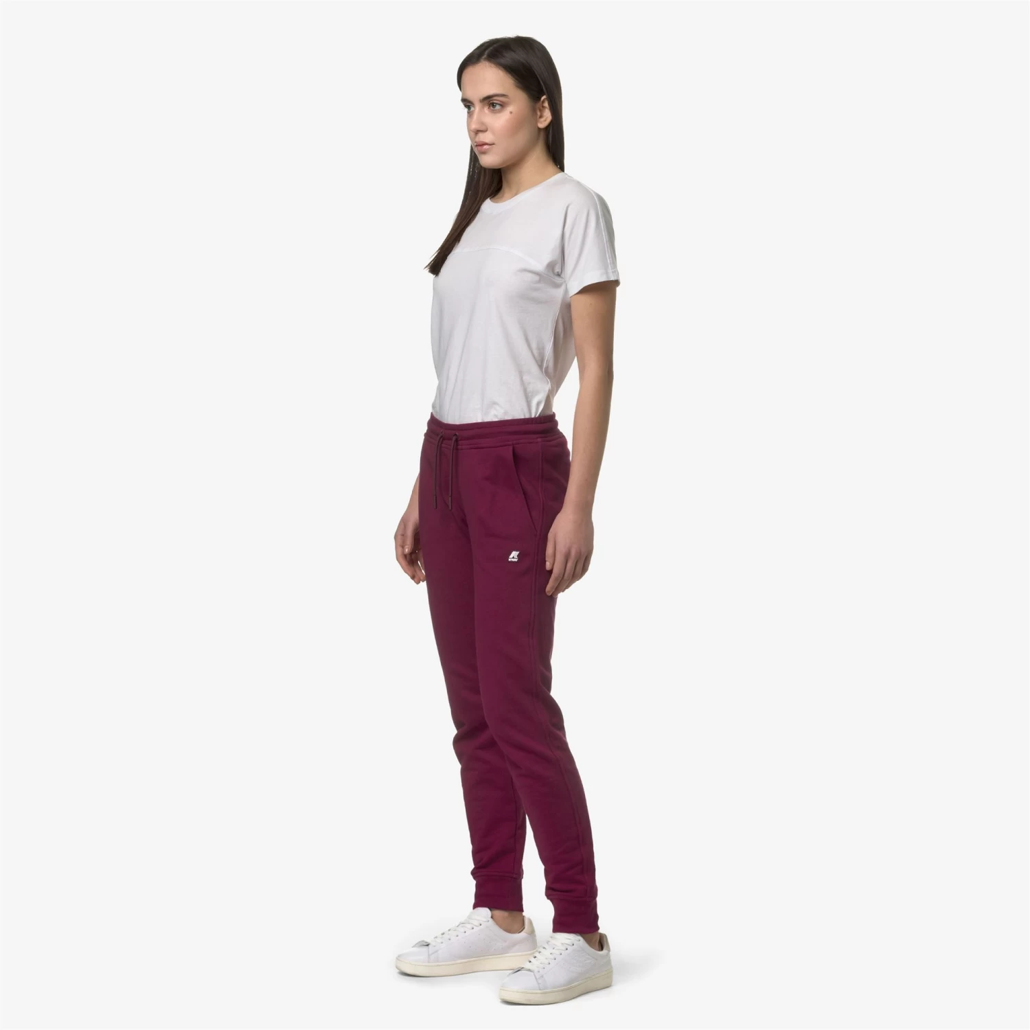 The Ginevra women’s fleece jogging bottoms are perfect for leisure looks, either at home or out and about. They offer maximum comfort and freedom of movement, thanks to their drawstring waist and stretch rib ankle cuffs. Embellished with the K-Way logo for a signature brand touch.