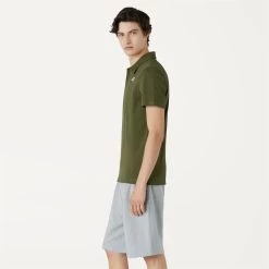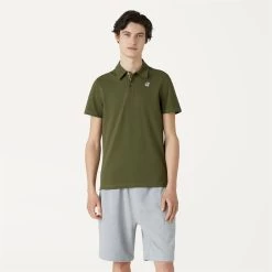 stretch fabric. The neck features a sweat-proof strip. Mother of pearl buttons