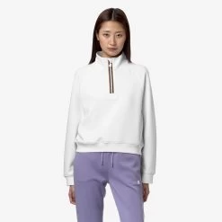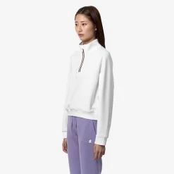 Jeune is a women’s sweatshirt made from lightweight scuba, a material with a soft and flexible texture that provides comfort and freedom of movement. This style features a regular fit and a sporty cropped cut with a high neck, raglan sleeves, elasticated cuffs and hem, and a half-zip closure finished with a chin guard.