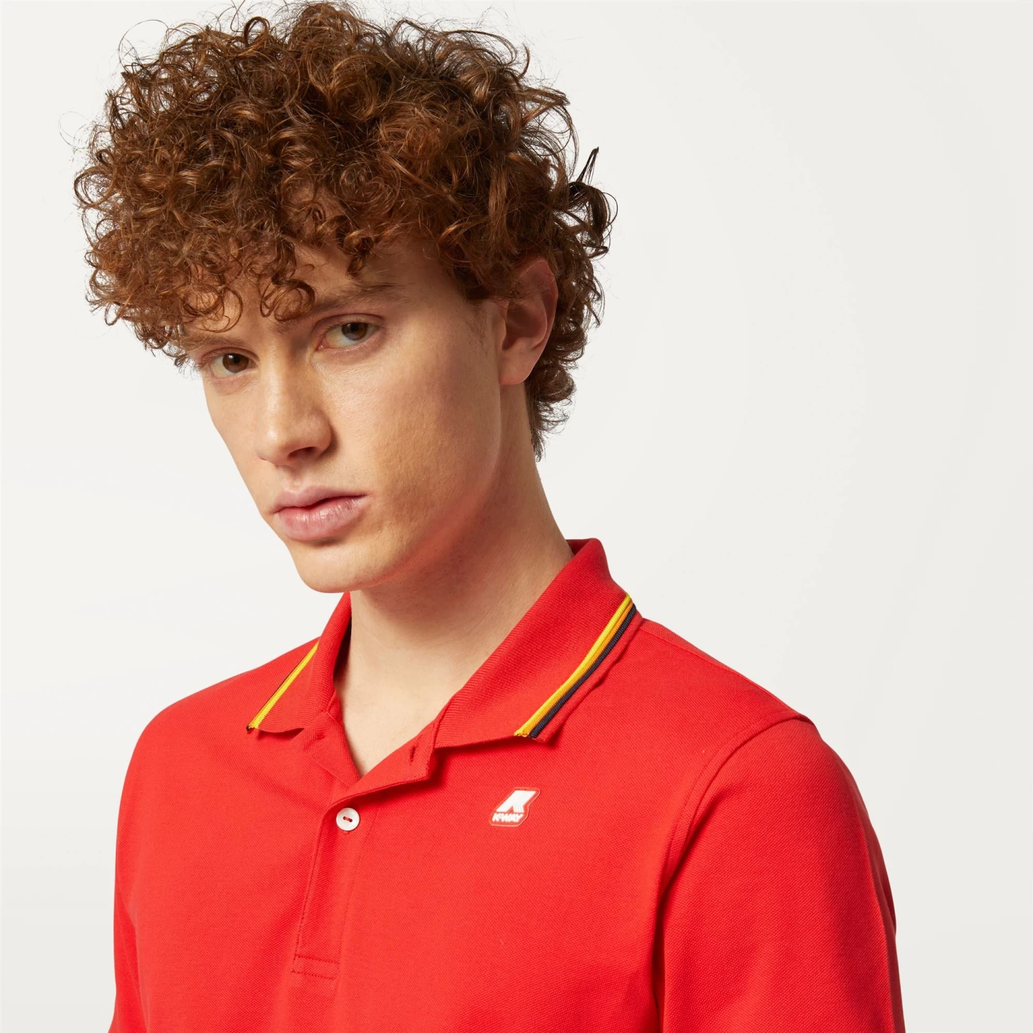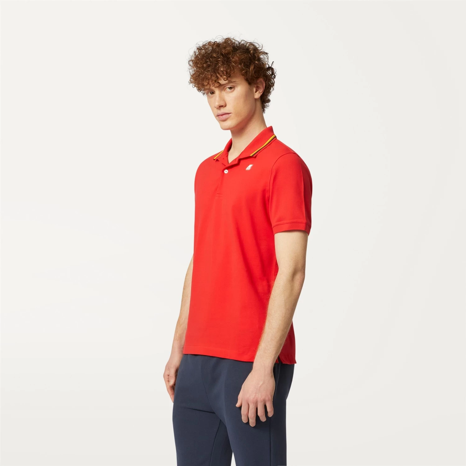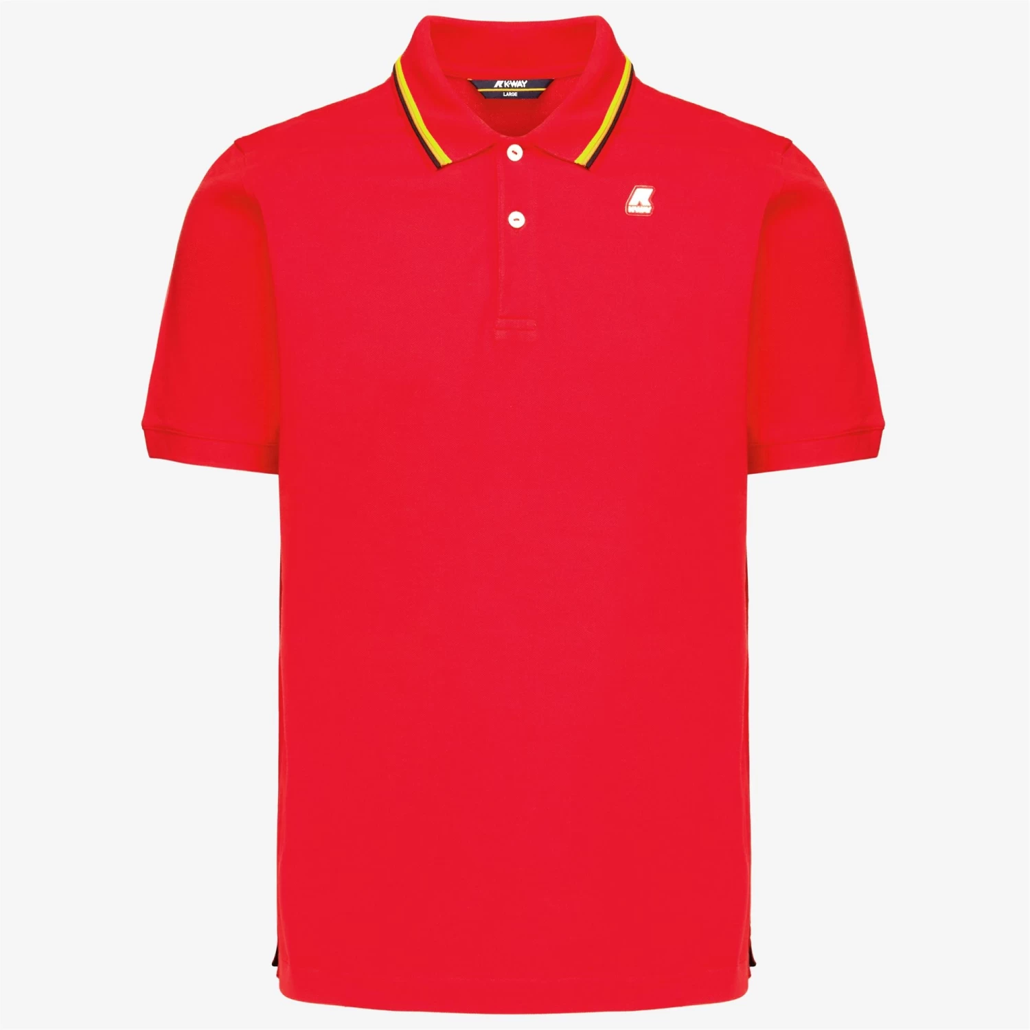 The Jude men’s polo shirt is crafted from stretch cotton piqué: ultra-soft and extremely flexible. The collar is detailed with a striped trim inspired by K-Way’s iconic tape, whilst side slits provide optimal freedom of movement.