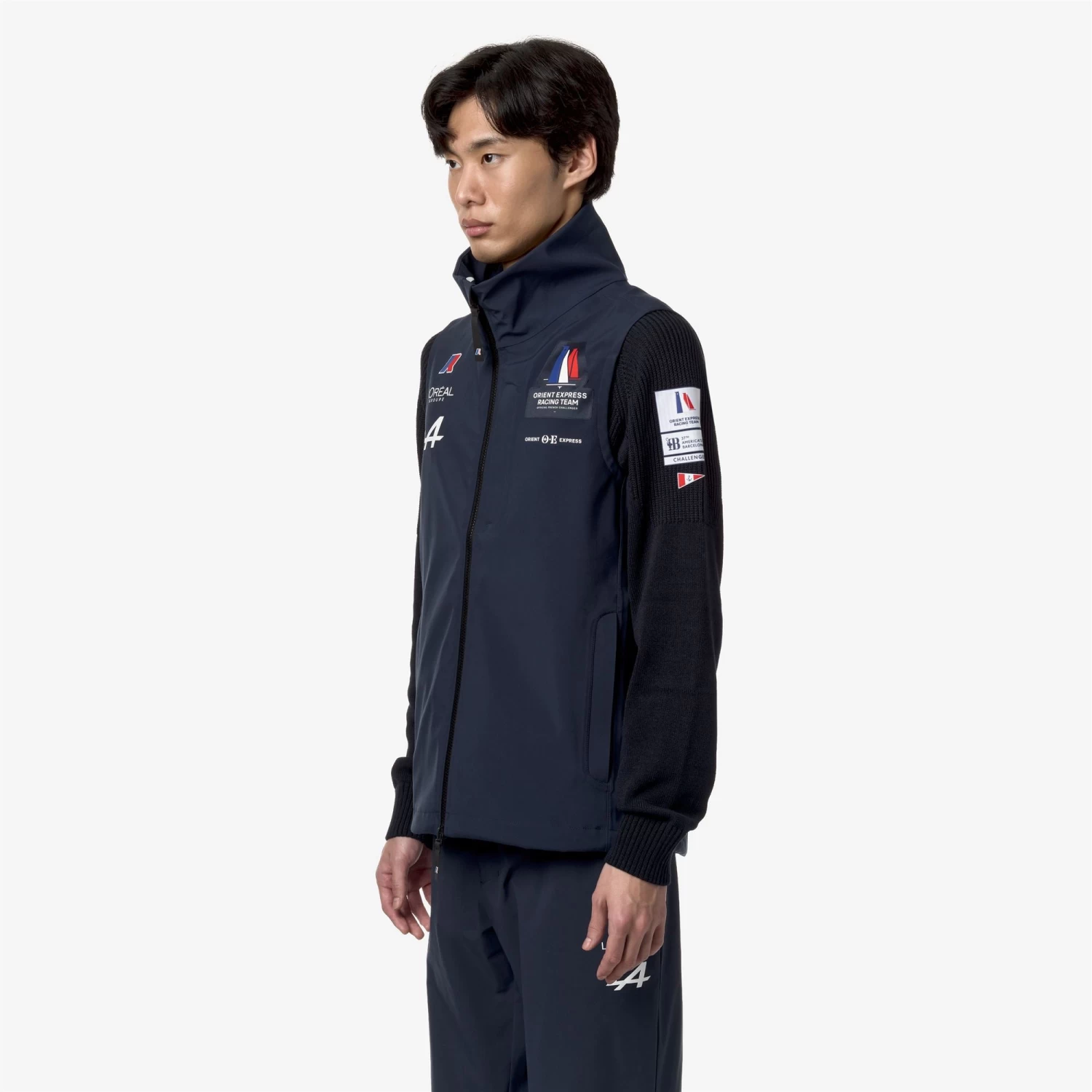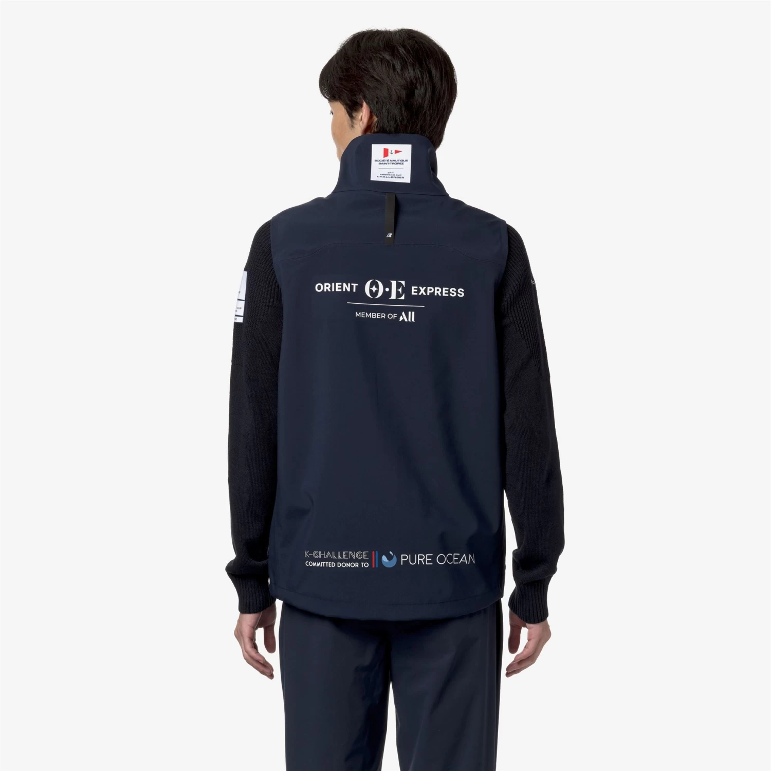 KHEROSTIN ORIENT EXPRESS TEAM AC is the special sleeveless SLIM FIT jacket designed by K-Way in collaboration with the Orient Express Racing Team crew, to celebrate their sponsorship for the 37th America’s Cup. The line pays homage to K-Way’s strong relationship with water and wind: style and performance, for fully embracing the sea. The technical features of this jacket make it suitable for professional use. Waterproof to 10,000 water columns, wind-resistant, and breathable at 10,000 gr/m2/24h. Made with bonded three-layer fabric, one of K-Way’s most iconic materials, with contrast color thermo-taped internal seams. The high collar is adjustable. Front zip closure with double slider, adjustable straps cuffs, and external side and heart point pockets. Rear loop hook for drying. External logos applied include Orient Express, sponsors, and America’s Cup. K-Way logo applied in silicone.