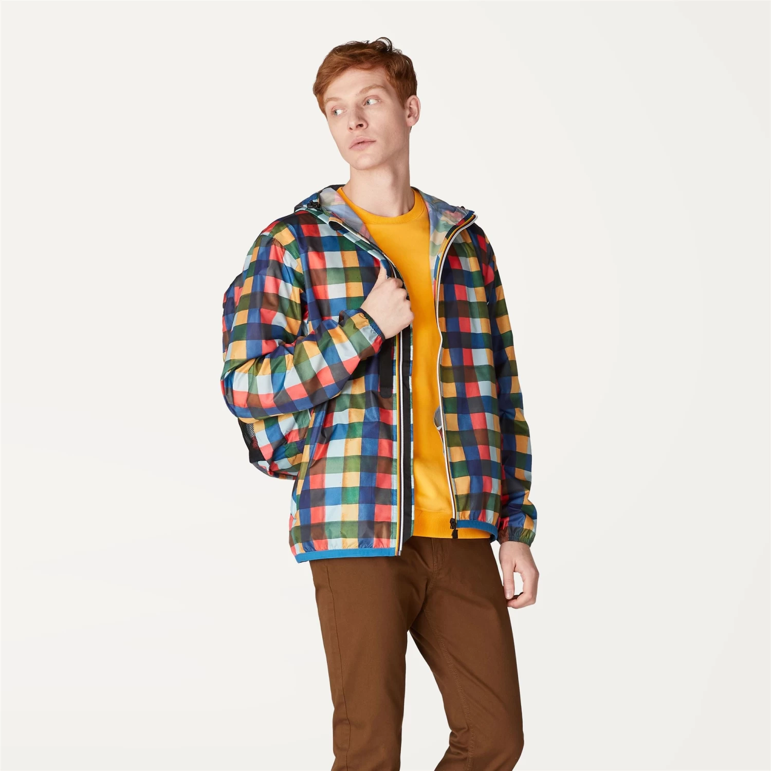 This short jacket reinterprets the iconic Claude style with a graphic twist, sporting an eye-catching all-over print. This unisex design is crafted from water-repellent and windproof ripstop with inner heat-taped seams that ensure optimal insulation from the elements. But it’s greatest strength? When folded up and stashed inside one of the two pockets, this jacket takes up hardly any space at all: the perfect emergency waterproof to keep in your bag or backpack at all times.