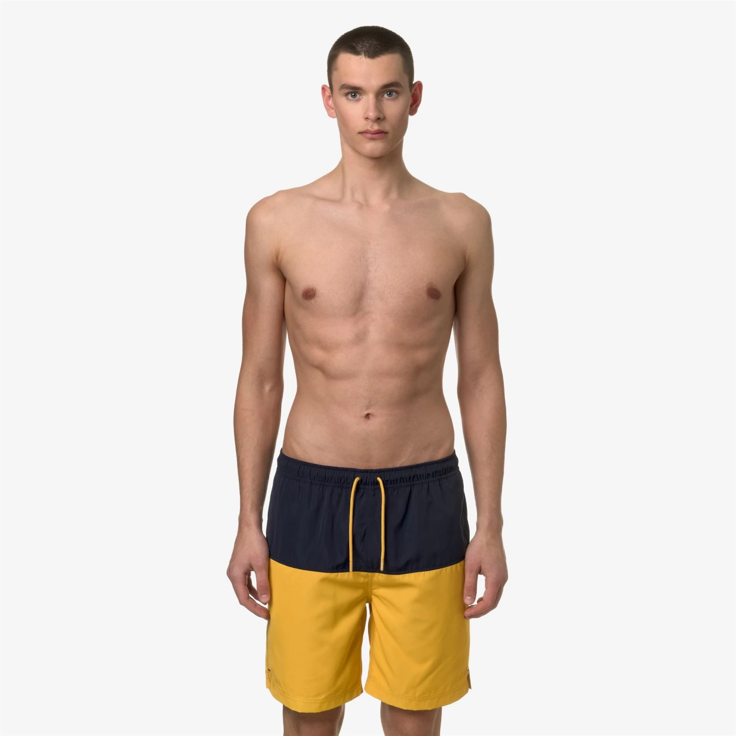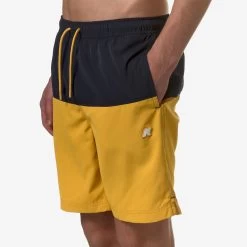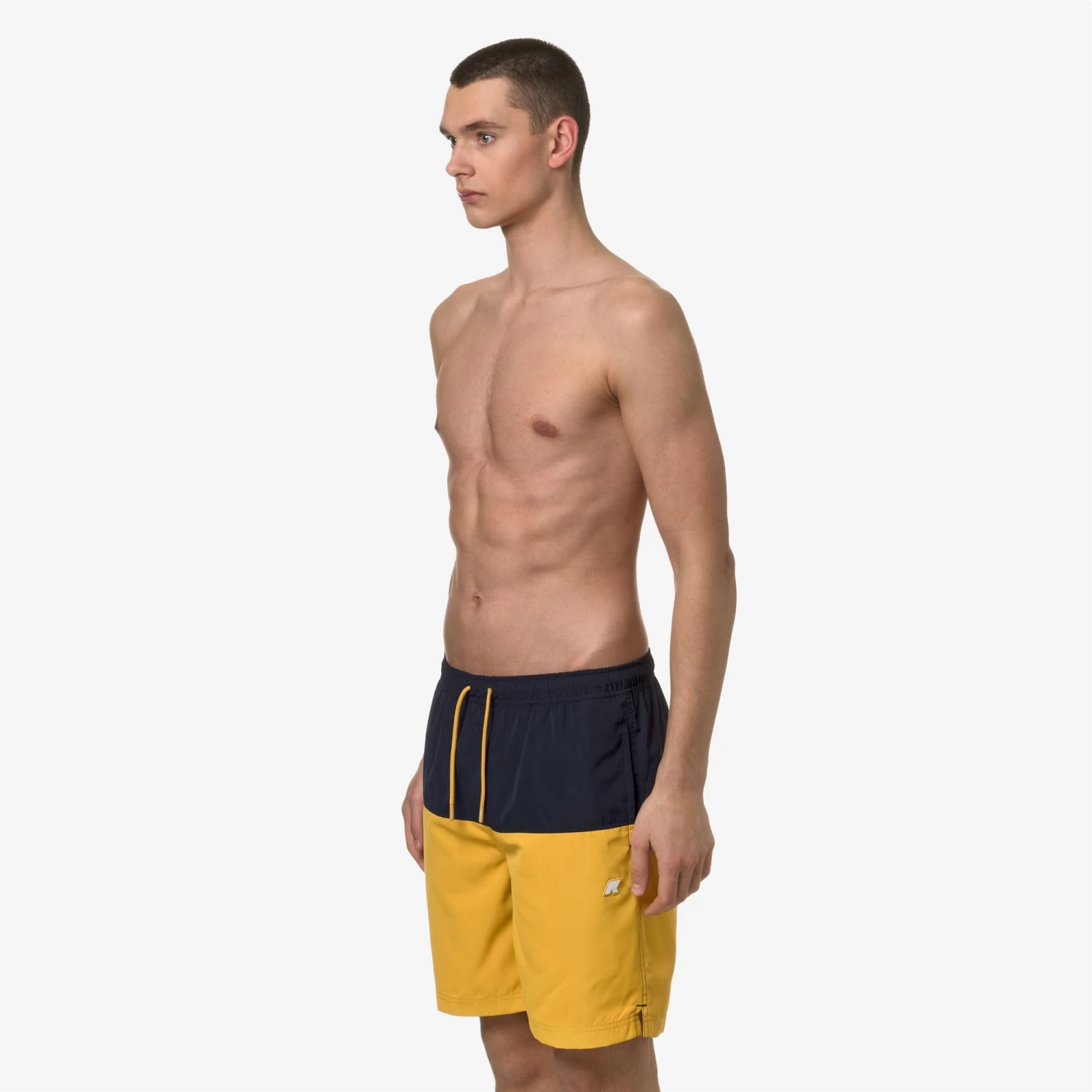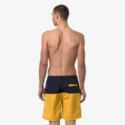 Lenon is a men’s bermuda swimsuit with a versatile and functional colorblock design. The trunks feature two side pockets and one at the back, with the graphic detail of K-Way tape. Made from quick-drying nylon, they have an elasticated waistband, an internal mesh lining, and side vents for maximum freedom of movement.