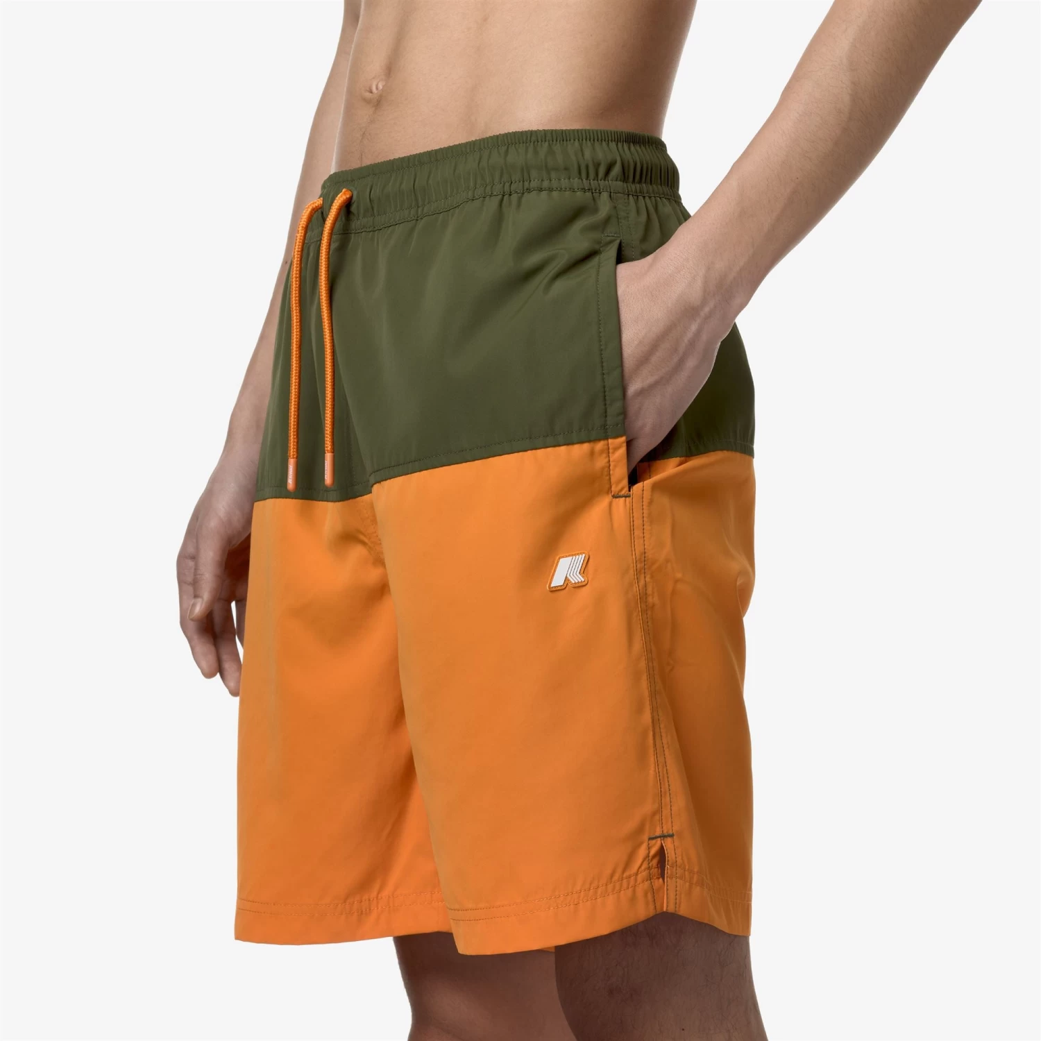 Lenon is a men’s bermuda swimsuit with a versatile and functional colorblock design. The trunks feature two side pockets and one at the back, with the graphic detail of K-Way tape. Made from quick-drying nylon, they have an elasticated waistband, an internal mesh lining, and side vents for maximum freedom of movement.