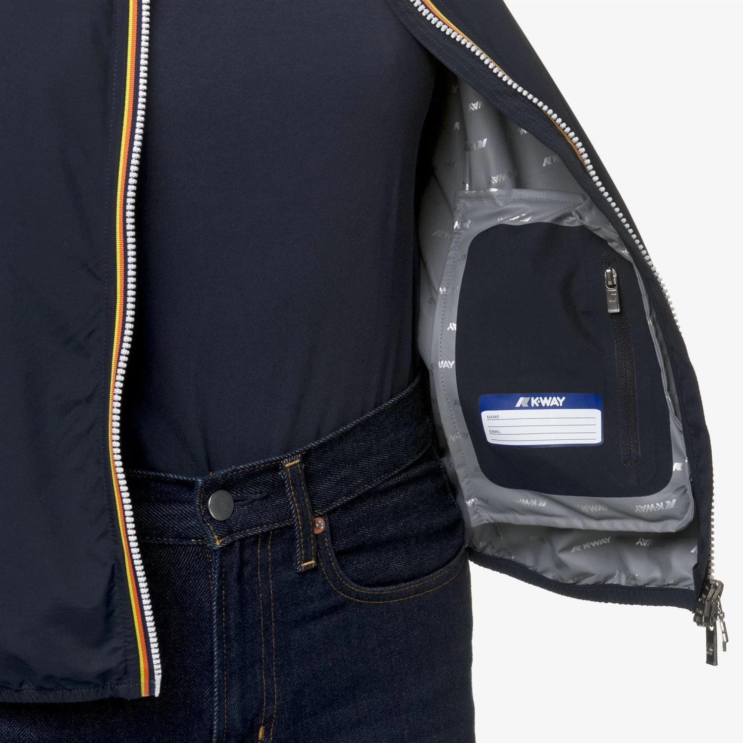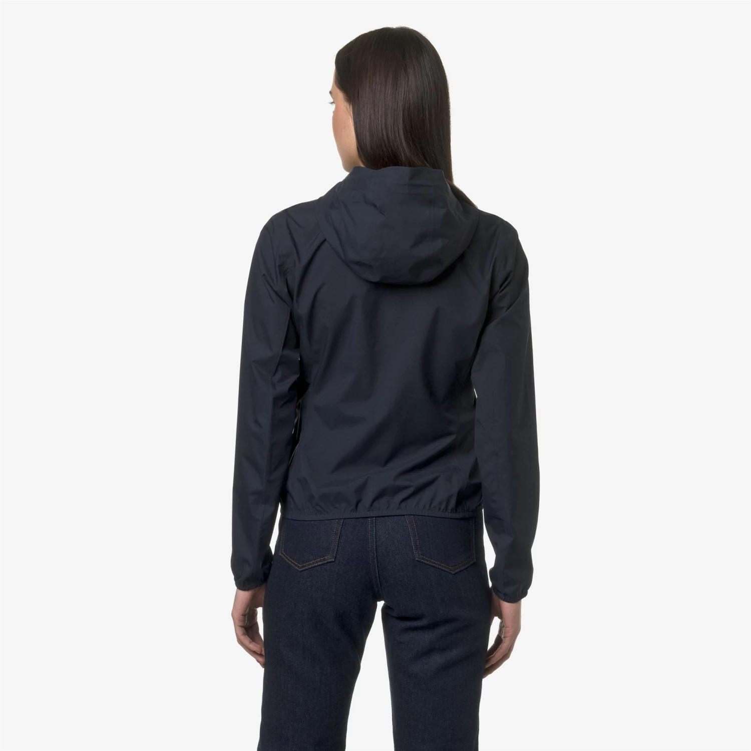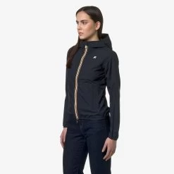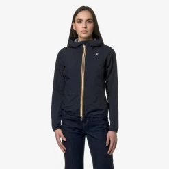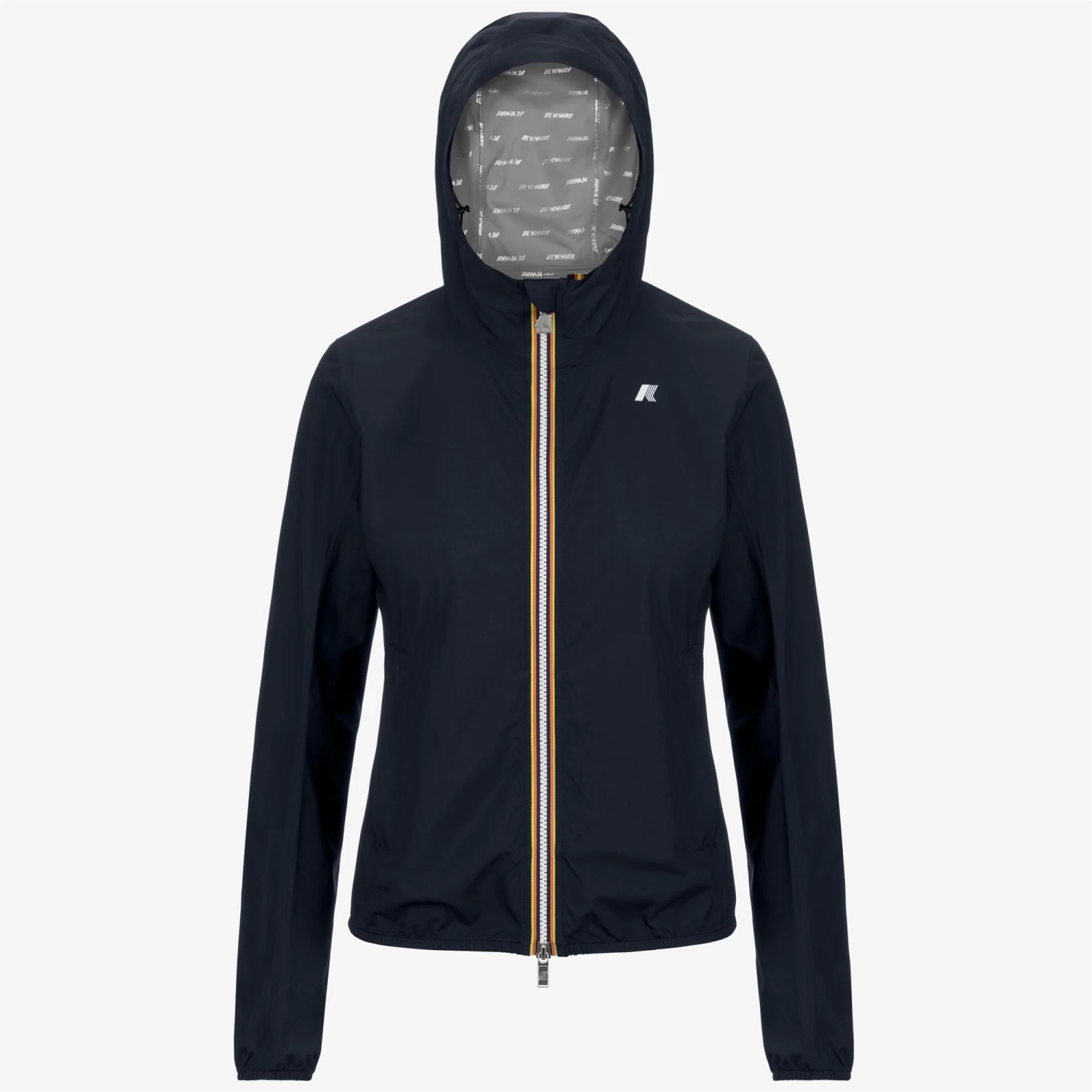 Lily is a women’s short jacket, perfect for transitional seasons, with a slim fit. It’s crafted from recycled and stretch technical fabric that allows freedom of movement while providing protection against wind and rain, with water resistance up to 10000mm. The interior is lined with an insulating membrane adorned with silver-tone K-Way lettering printed all over. Functional details such as side pockets with zippers, a wrap-around hood, cuffs, and hems with elastic inserts ensure a secure and comfortable fit for easy wear.