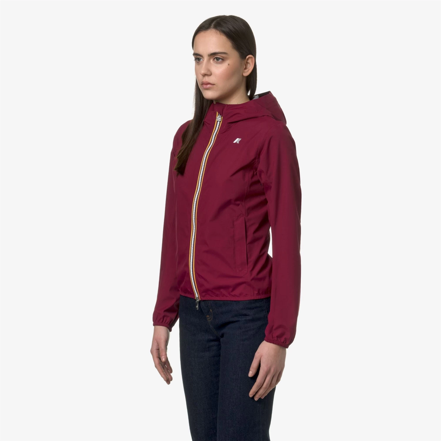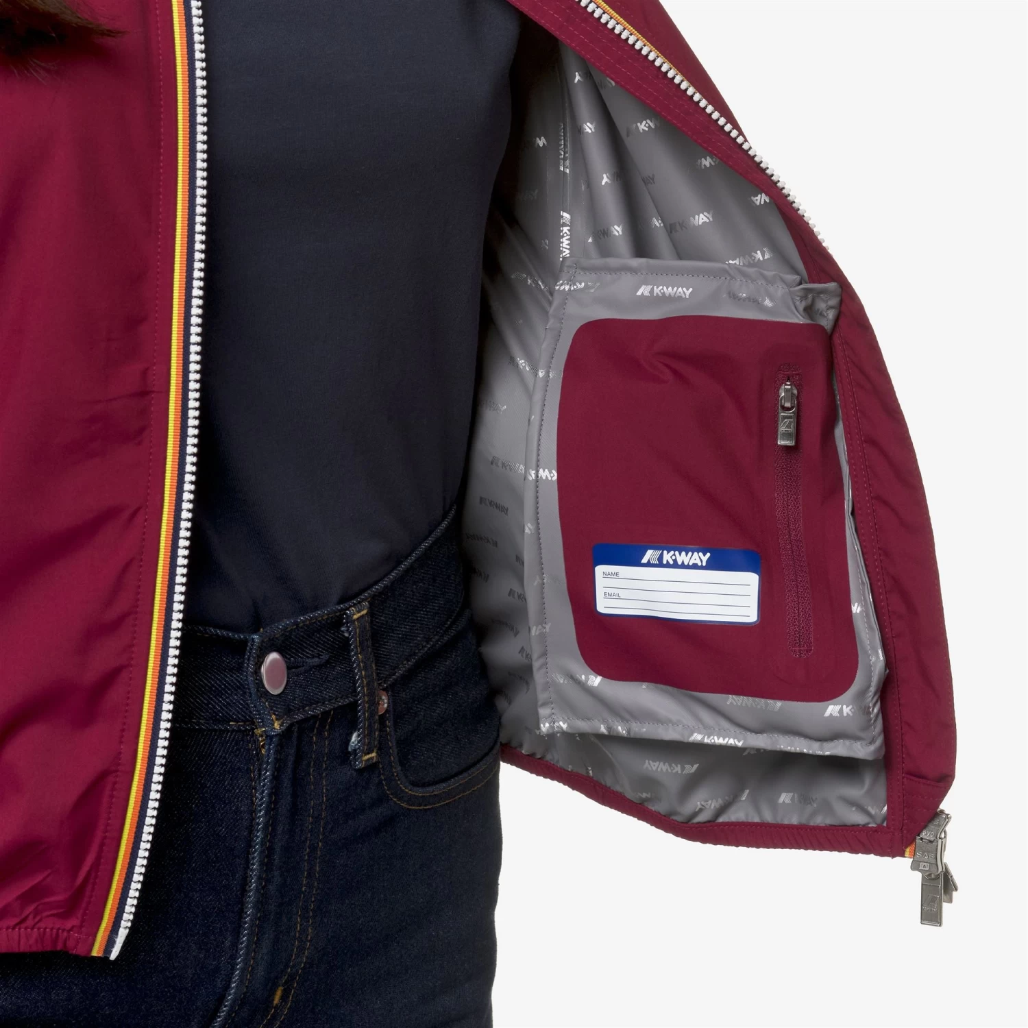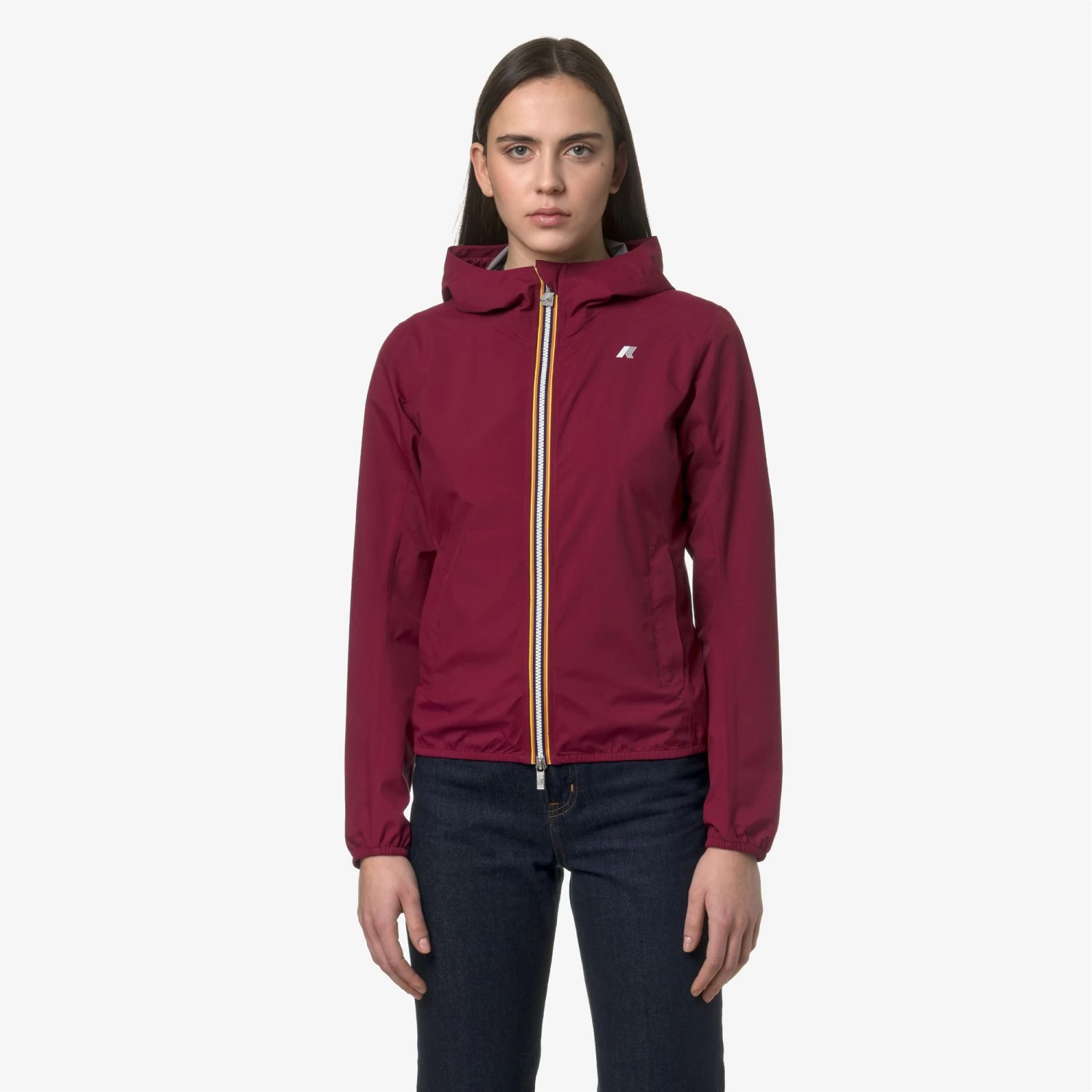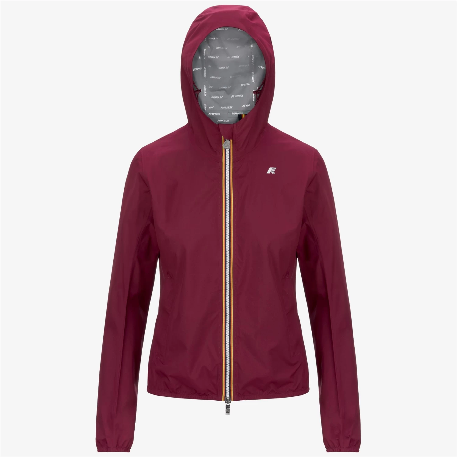 Lily is a women’s short jacket, perfect for transitional seasons, with a slim fit. It’s crafted from recycled and stretch technical fabric that allows freedom of movement while providing protection against wind and rain, with water resistance up to 10000mm. The interior is lined with an insulating membrane adorned with silver-tone K-Way lettering printed all over. Functional details such as side pockets with zippers, a wrap-around hood, cuffs, and hems with elastic inserts ensure a secure and comfortable fit for easy wear.