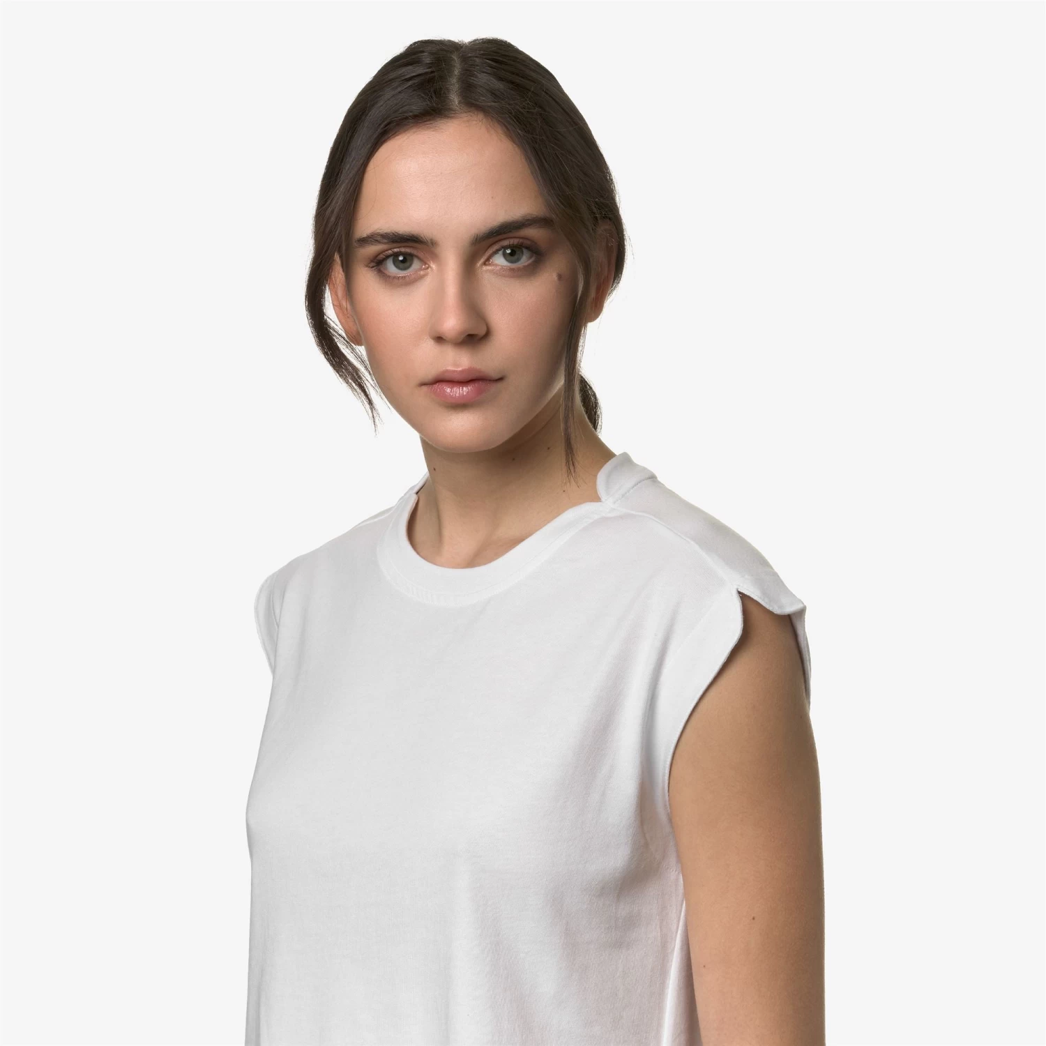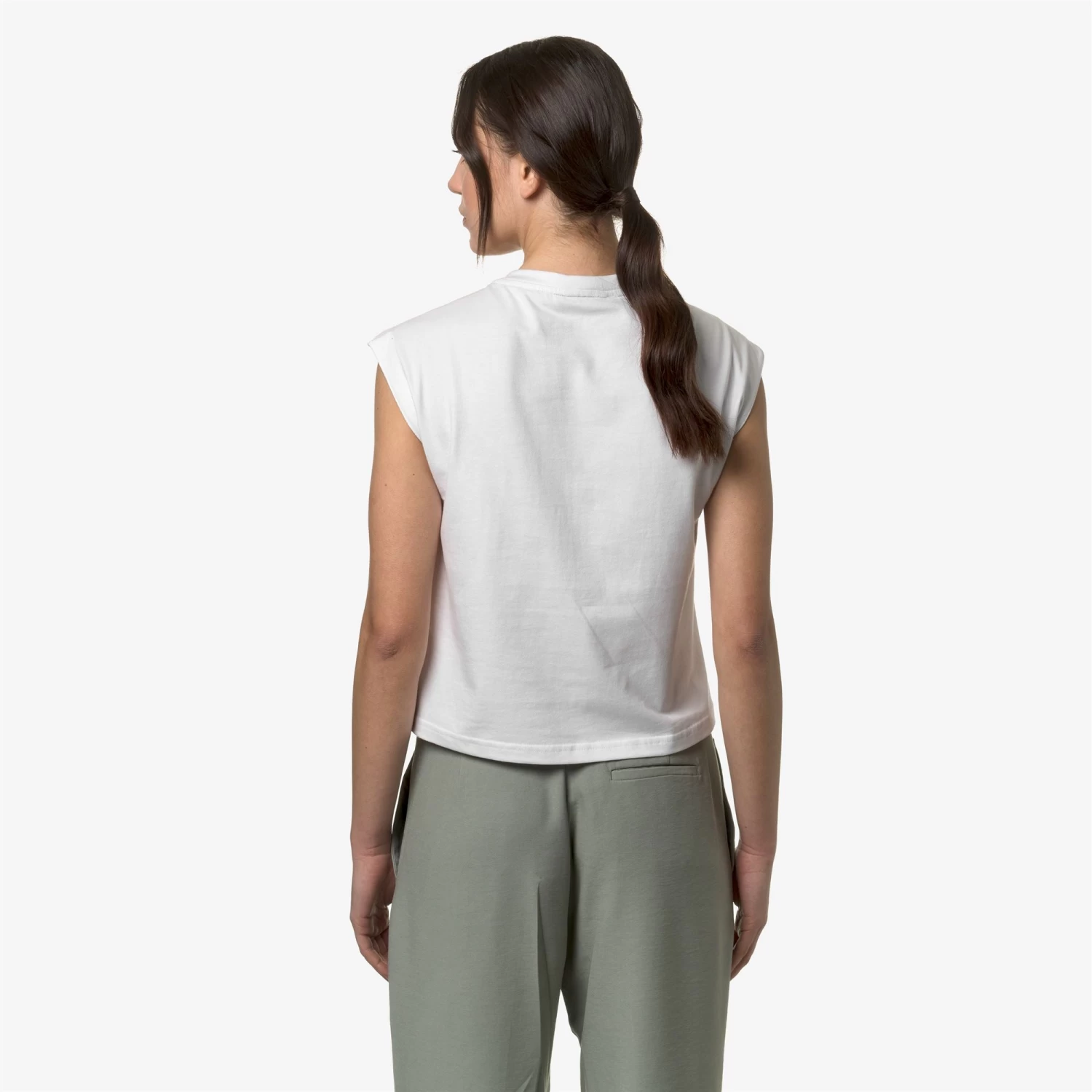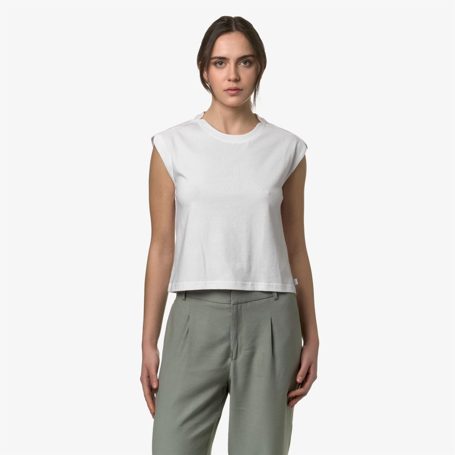 Limmy is a women’s sleeveless top made from soft pure cotton jersey, with a regular fit and rounded cuts on the collar and shoulders. Its relaxed look makes it suitable for leisure and sports. The tonal flag application with the white K-Way logo adds a discreet graphic detail.