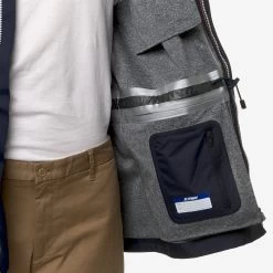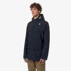The Menphy men’s jacket, inspired by the classic field jacket, boasts a slim fit and a versatile look. Its three ply fabric combines an external nylon layer with an insulating inner membrane and a soft jersey lining. Protective and lightweight, this exceptionally high-performance fabric is able to withstand up to 10,000 mm of water pressure for superior resistance in the rain: perfect for in between seasons.
