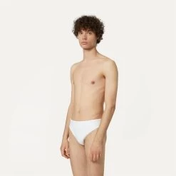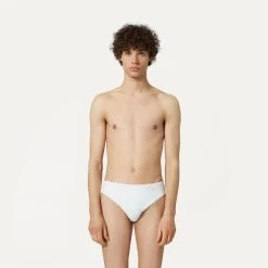 The Olympic swim briefs boasts a functional design that moves as you do: a comfy choice for the beach and perfect for sports activities too. Crafted from quick-dry lycra®, they feature an elasticated drawstring waist and a K-Way logo on the side for a distinctive touch.