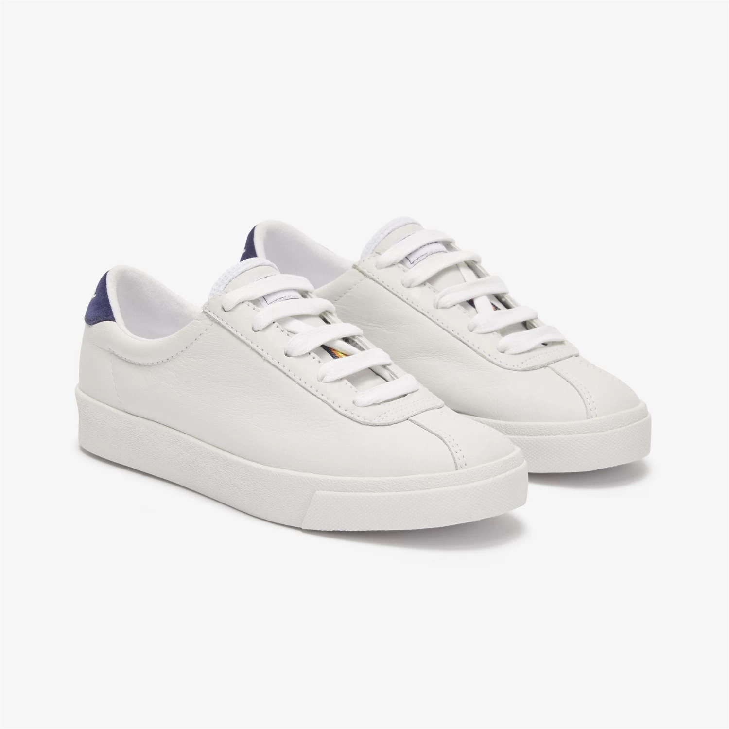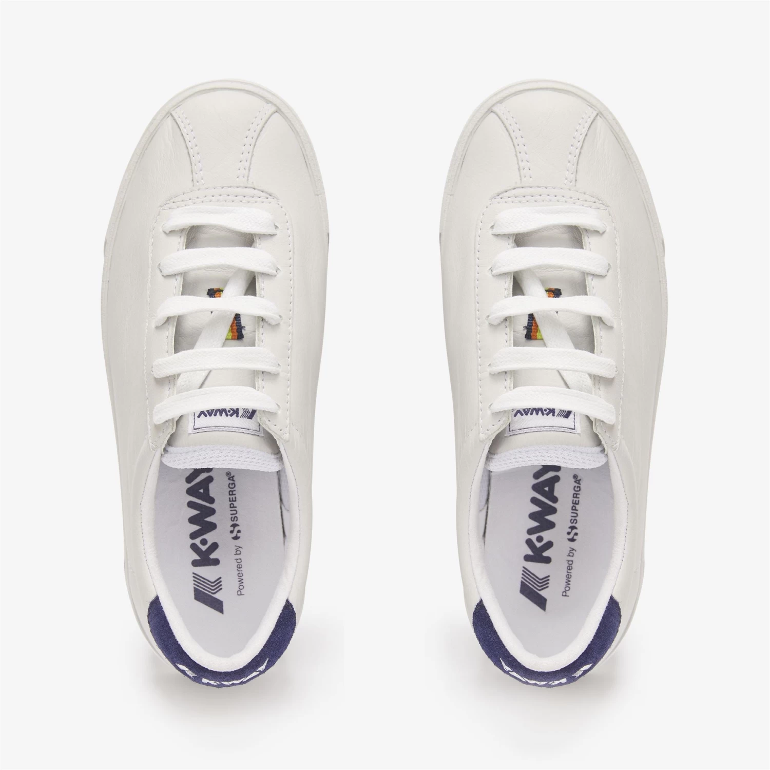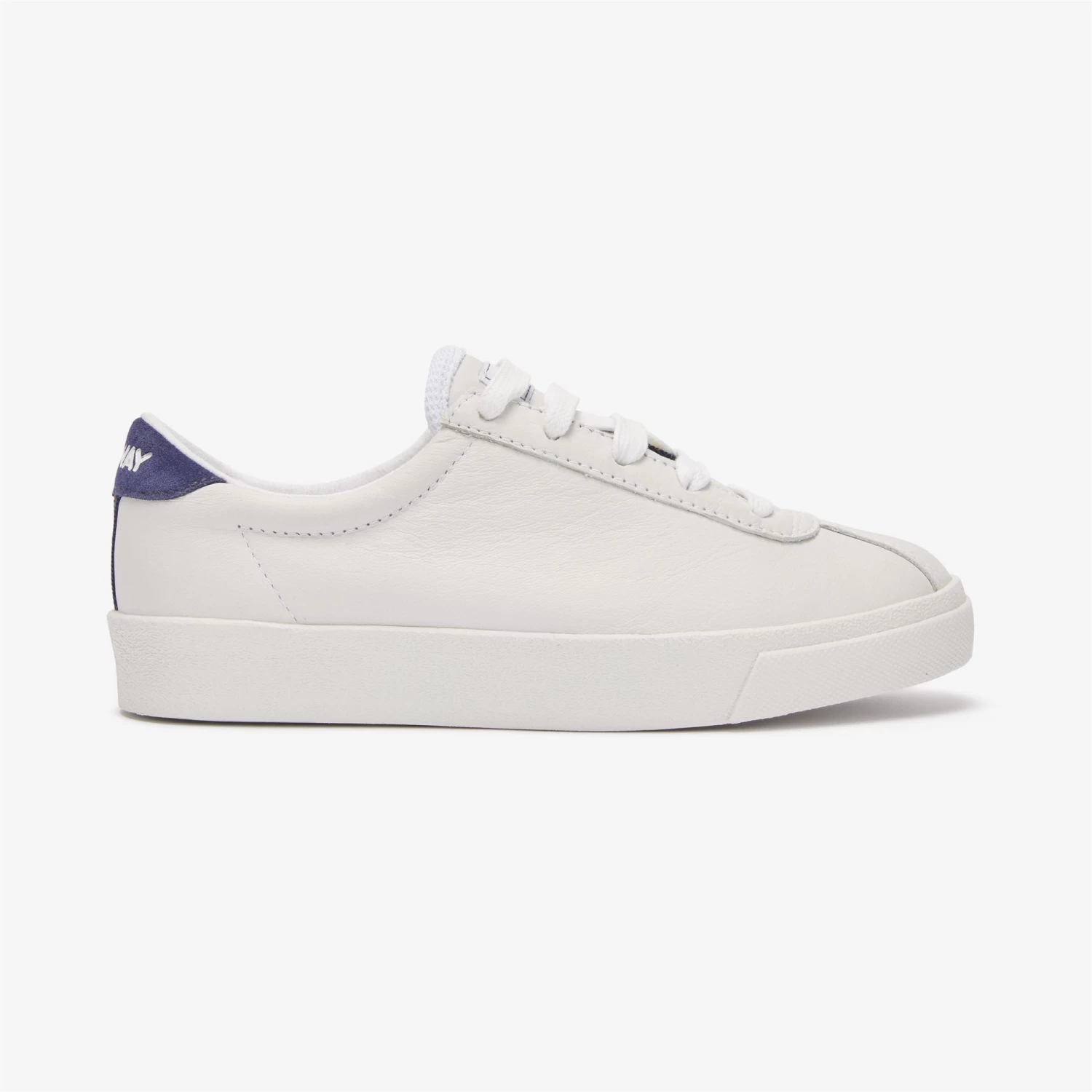 A tribute to tennis clubs combined with the initial of the brand: this is how the naming of the Superga Sport Club S was born, a modern icon and a symbol of sportswear declined in a lifestyle key. The model has a versatile silhouette with a round, tapered toe, soft leather upper and a tongue personalised with the K-Way logo. Contrasting coated heel and K-Way tape. Box sole in vulcanized natural rubber typical of the brand.