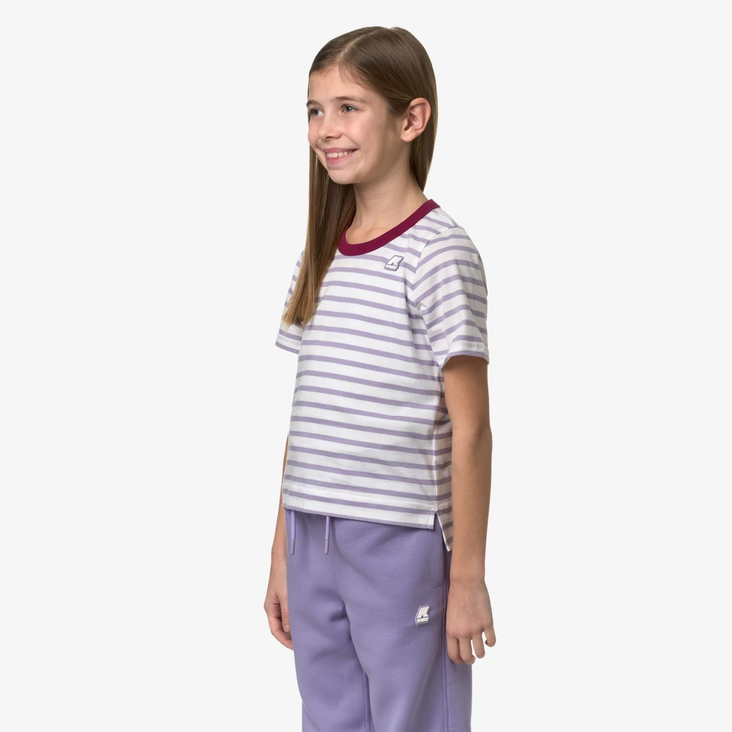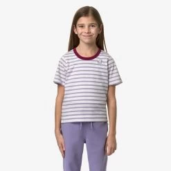 Emeli is a girls’ soft jersey T-shirt made from pure cotton, sporting a striped pattern and a contrasting colored crewneck. Its versatile short-sleeved silhouette is perfect for school and play dates alike. Two lateral vents improve the comfort of the fit and the white silicone logo patch adds a minimalist graphic touch.