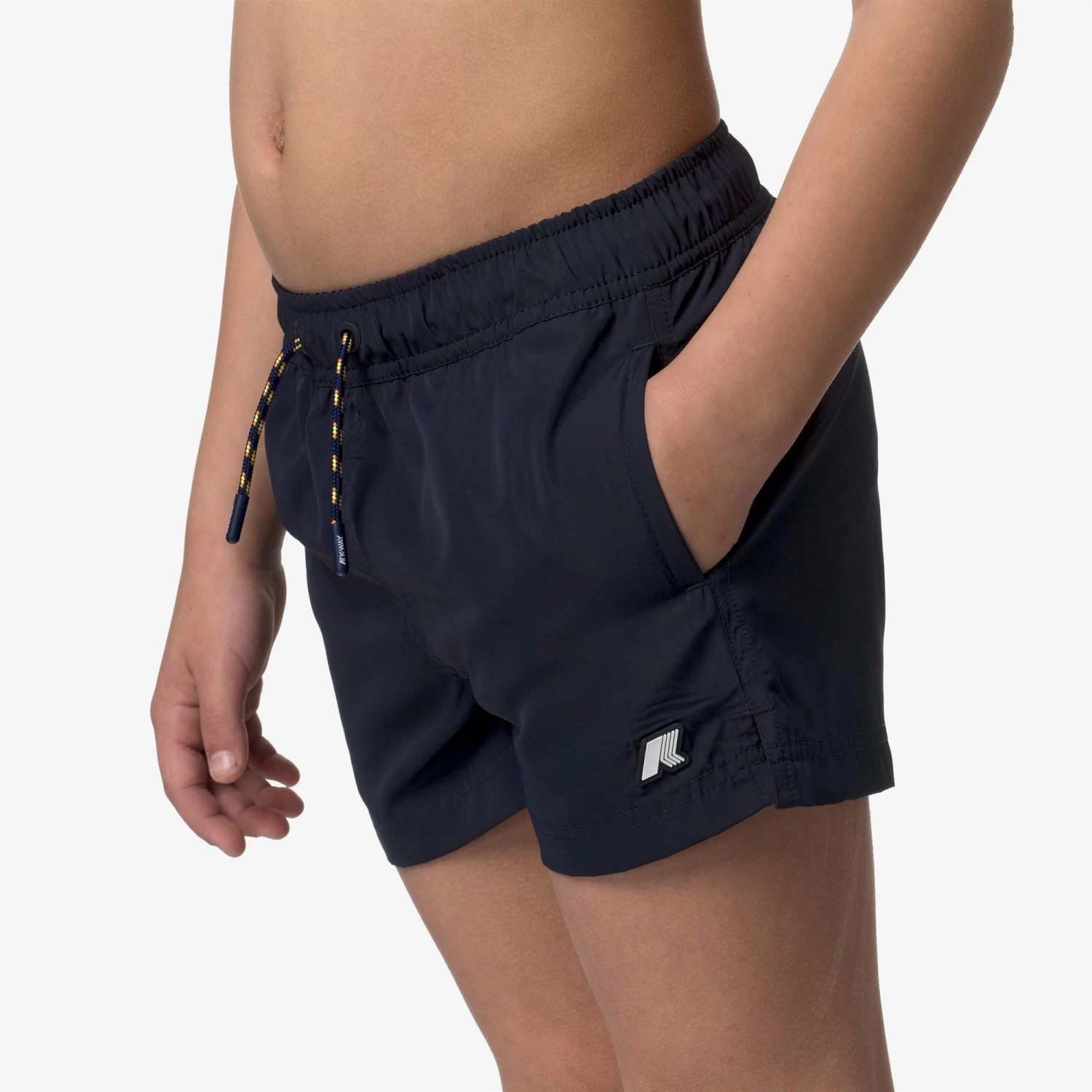Hazel is a pair of boys’ swim shorts that boast a classic boxer fit and a versatile, functional design with two pockets on the sides and one on the back, personalized with K-Way colorful tape. Crafted from quick-dry nylon, these swim shorts feature an elasticated waist, inner mesh briefs and side vents for optimal freedom of movement.