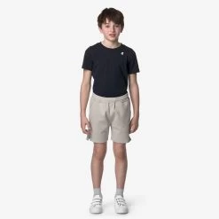 Keny is a pair of kids’ bermuda shorts with an athleisure, sporty-chic vibe and relaxed fit which is perfect for travel, sports and leisure time. It is made from technical, cotton-based soft-touch interlock, which guarantees breathability and freedom of movement. The white silicone logo adds a minimalist graphic touch.