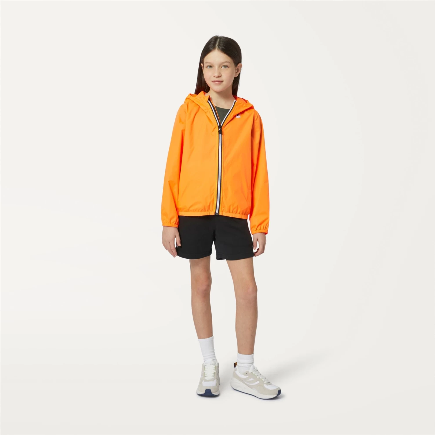 The iconic short Claude jacket is reinterpreted for little K-Way style lovers. This unisex style is crafted from water-repellent and windproof ripstop with inner heat-taped seams that ensure optimal insulation from the elements. But it’s greatest strength? When folded up and stashed inside one of the two pockets, this jacket takes up hardly any space at all: the perfect emergency waterproof to keep in their bag or backpack at all times.