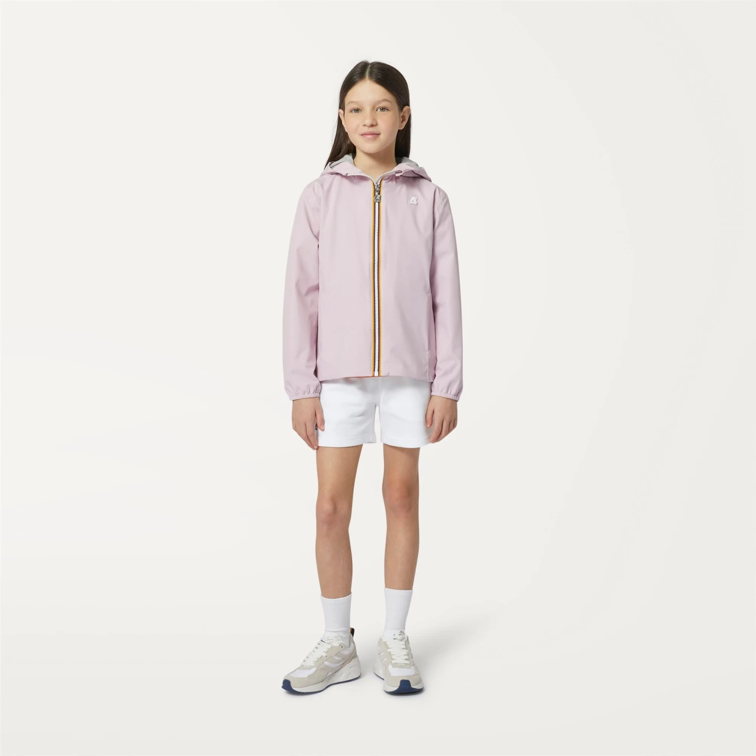 The Marguerite short girls’ jacket offers a mid level of warmth perfect for in between seasons. Crafted from waterproof and windproof coated polyester and lined in soft grey melange cotton jersey, it channels a modern, casual vibe.