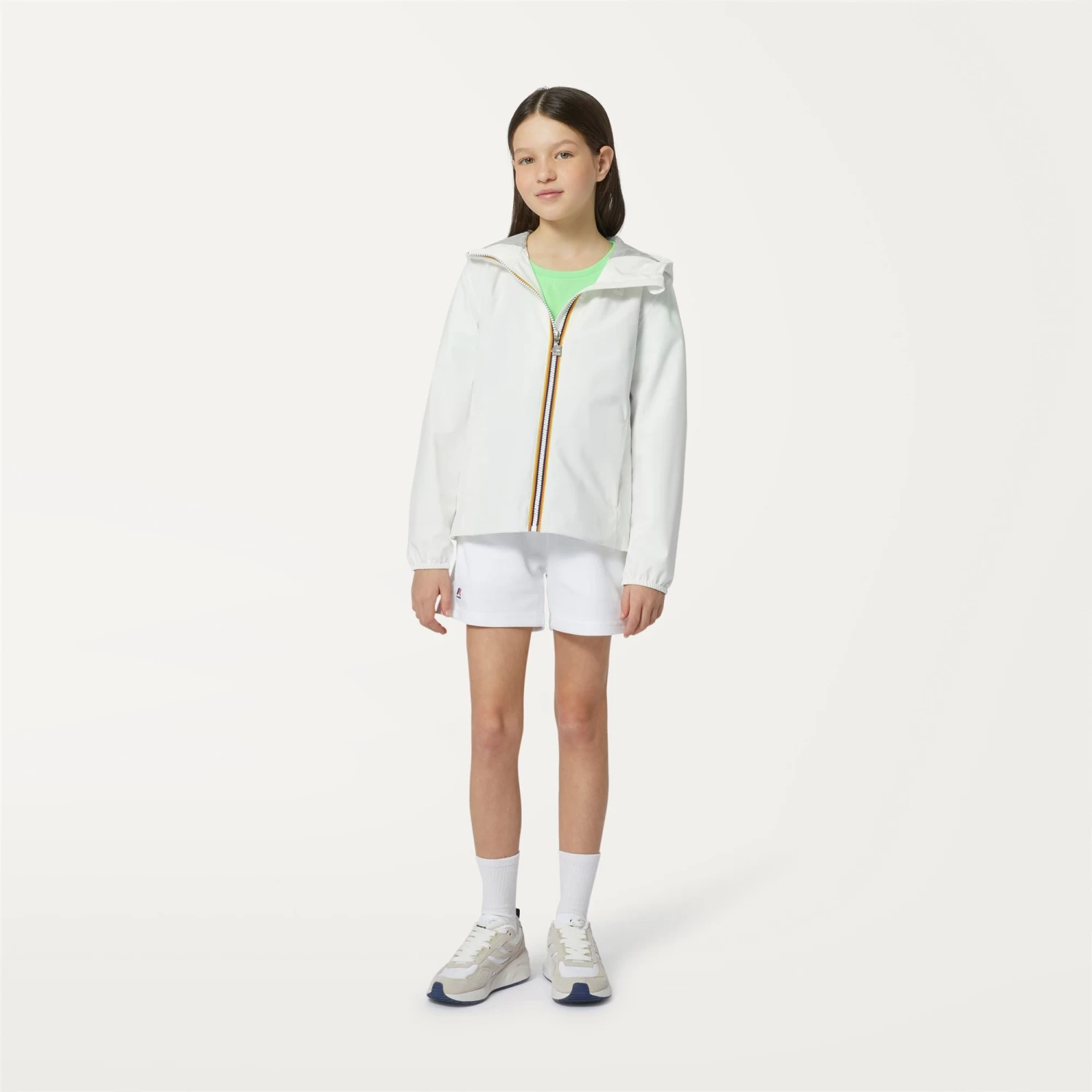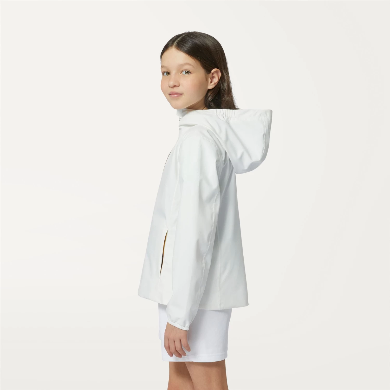 The Marguerite short girls’ jacket offers a mid level of warmth perfect for in between seasons. Crafted from waterproof and windproof coated polyester and lined in soft grey melange cotton jersey, it channels a modern, casual vibe.
