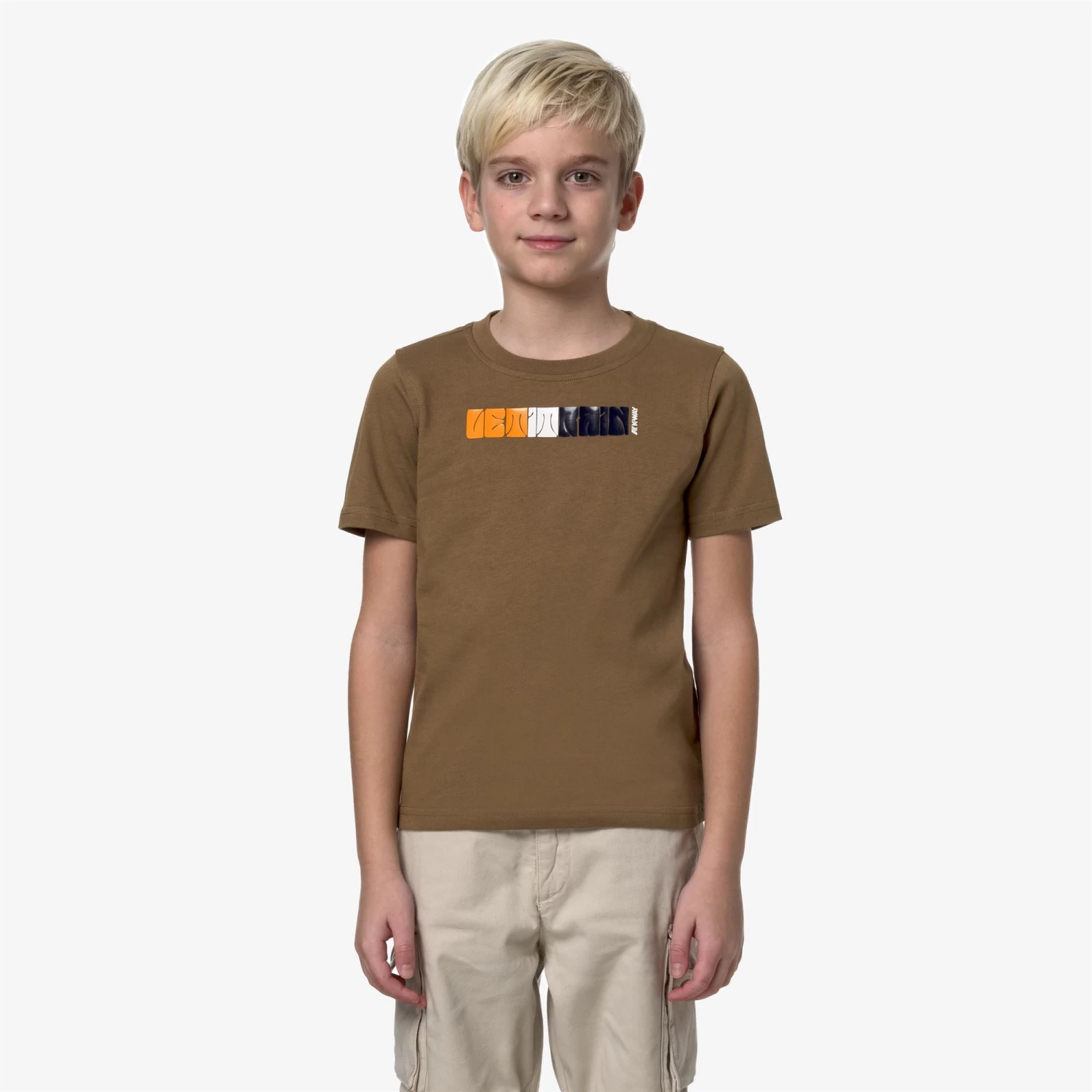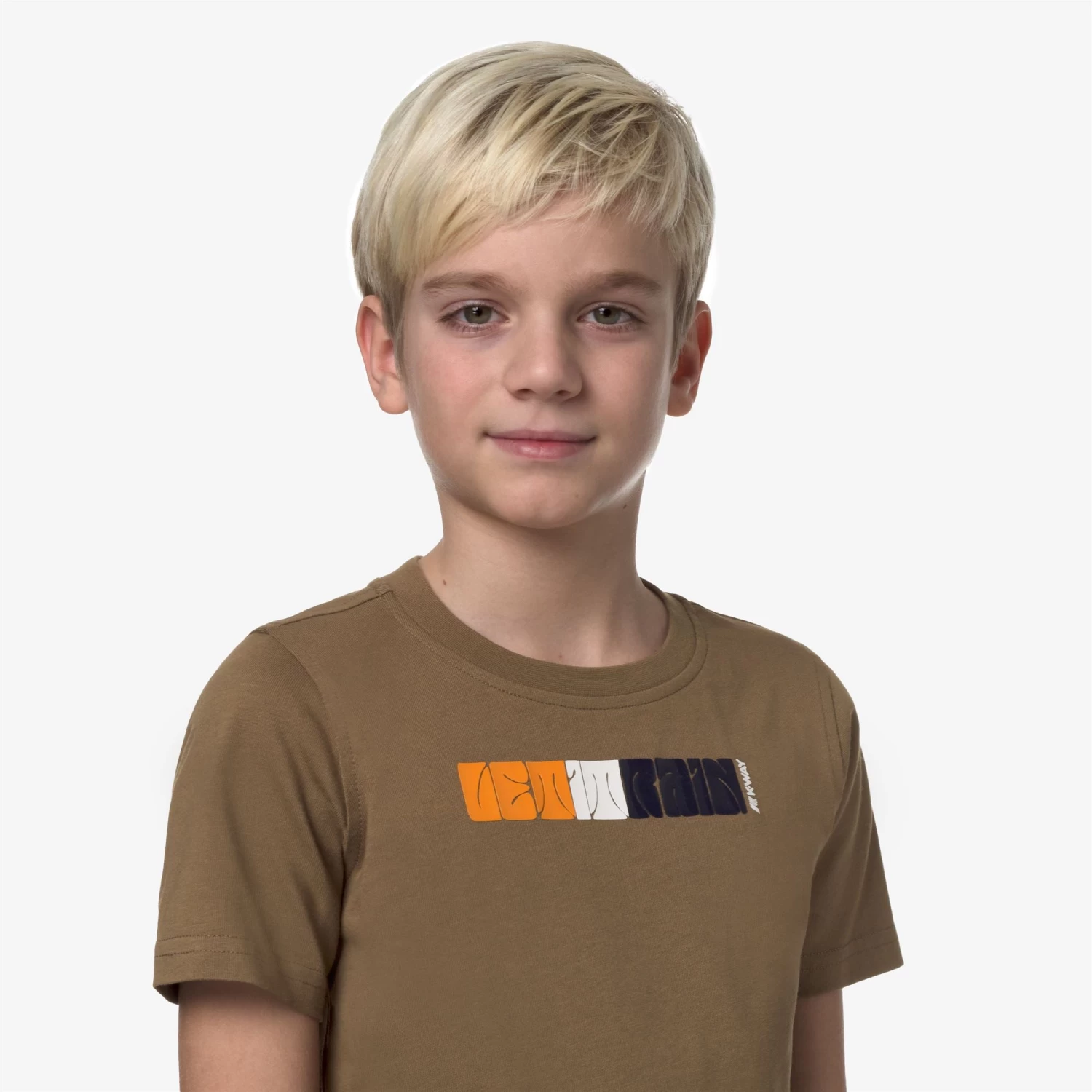 Odom is a kids’ soft jersey T-shirt made from pure cotton, sporting a fun 70s-inspired lettering print on the front and the colorful K-Way tape tab. Its versatile short-sleeved crewneck silhouette guarantees ease of movement while playing.