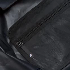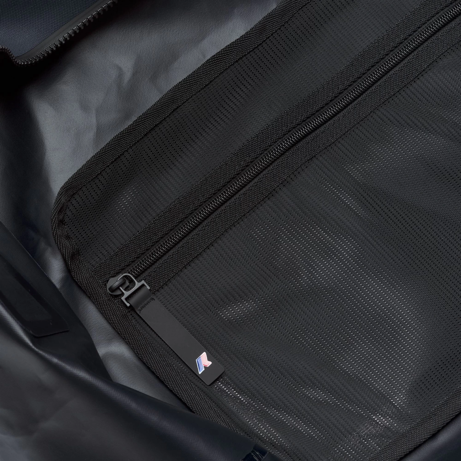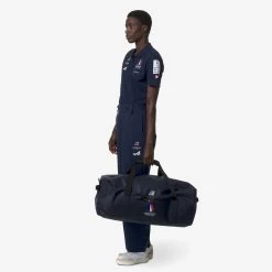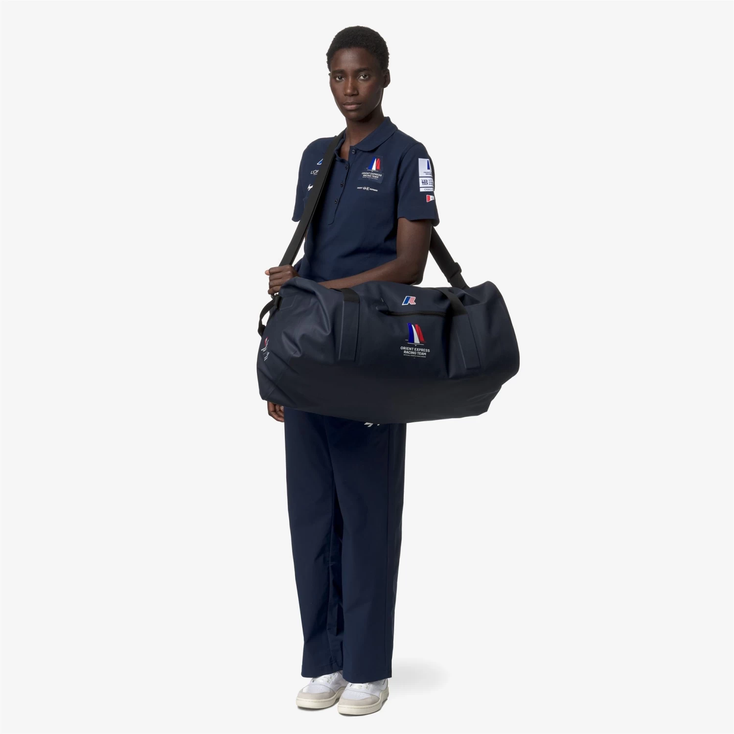 SANARY ORIENT EXPRESS TEAM AC is the technical duffle bag by K-Way, perfect for every adventure away from home, created to celebrate the sponsorship of the Orient Express Racing Team for the 37th America’s Cup. Made from waterproof technical fabric with PVC coating, it features a main opening system with a waterproof zipper and a custom puller with the K-Way logo. Side handles in grosgrain and reinforcement with snap closure. Removable shoulder strap in grosgrain tape. External side pocket with zipper following the design reminiscent of the outerwear. Internal mesh pocket with zipper closure. Printed logos of K-Way, Orient Express, America’s Cup, and sponsors. Dimensions: H 27 x L 60 x W 33 cm.