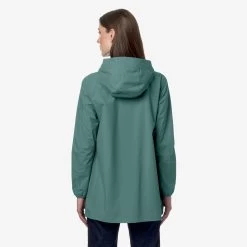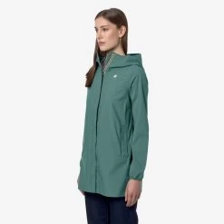Sophie is a women’s three-quarter length jacket characterised by a slim fit that contours the silhouette. Made from recycled stretch fabric that offers protection against wind and rain, with water resistance up to 5000mm, its design is enhanced with an insulating inner membrane, printed with all-over silver K-Way lettering. A drawstring hood and elasticated cuffs add a functional touch for a practical and versatile garment, perfect for outdoor activities.