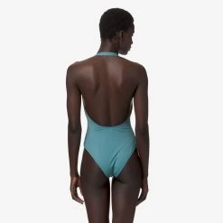 The Sylvie one-piece swimsuit boasts a feminine halterneck silhouette with a long front zip, embellished with K-Way’s iconic striped tape. Crafted from resistant quick-dry Lycra®, the design is detailed with a coloured K-Way logo on the side.