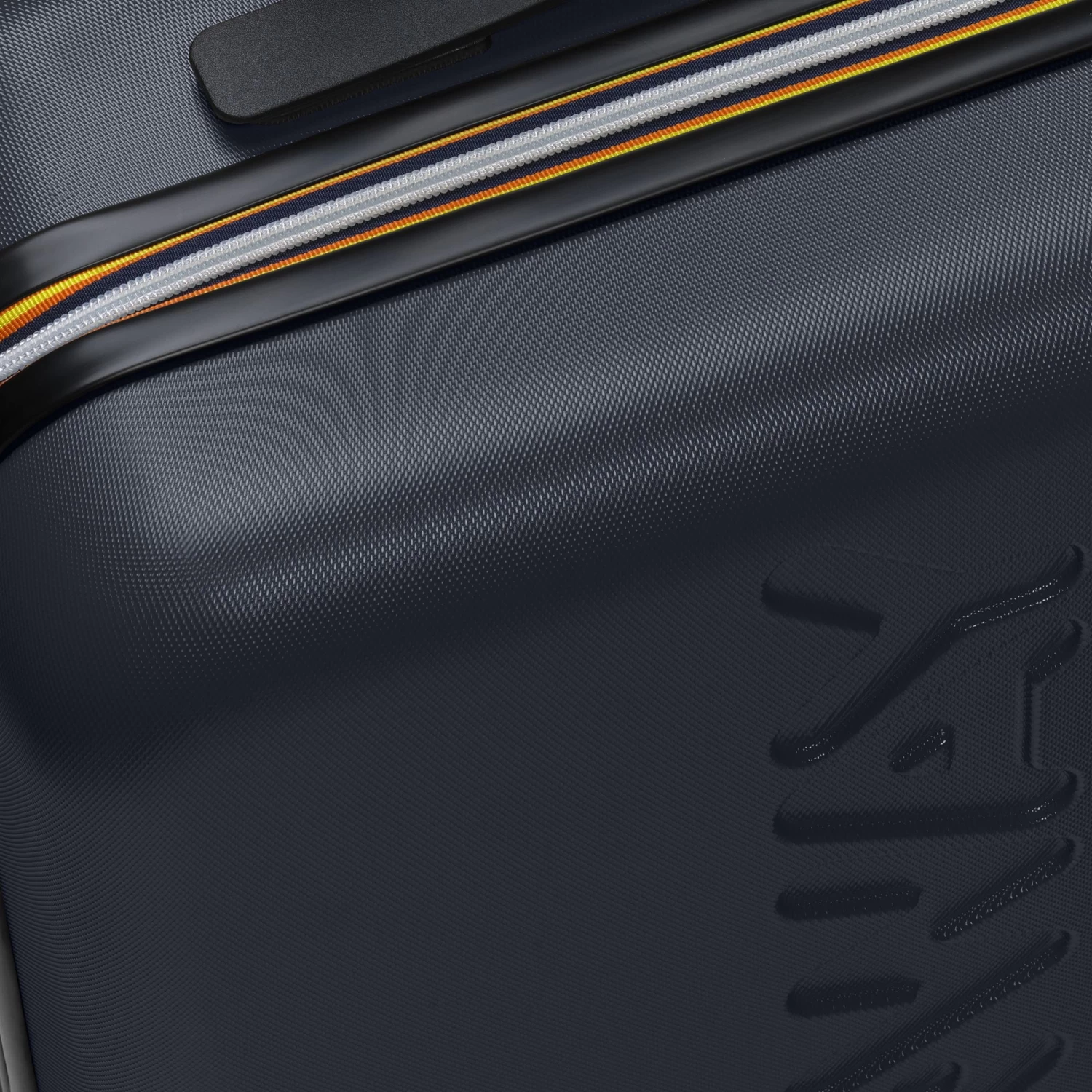 Flaunting a maxi logo print on the front, K-Way’s Small Trolley is the perfect carry-on size. Its rigid design is fitted with four 360° swivel wheels for maximum freedom of movement, three inside zip pockets and striped cross-over straps. Combination TSA-approved lock.