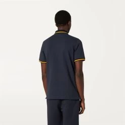 Vincent men’s short-sleeved polo shirt made from cotton piqué, featuring a contrast collar and cuffs with striped trims inspired by K-Way’s signature tape. Its slim contemporary fit is enhanced with side slits for maximum freedom of movement.