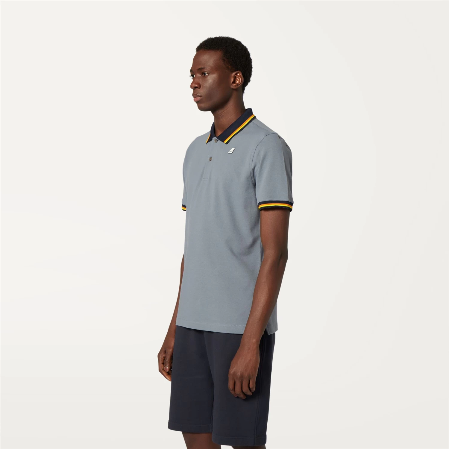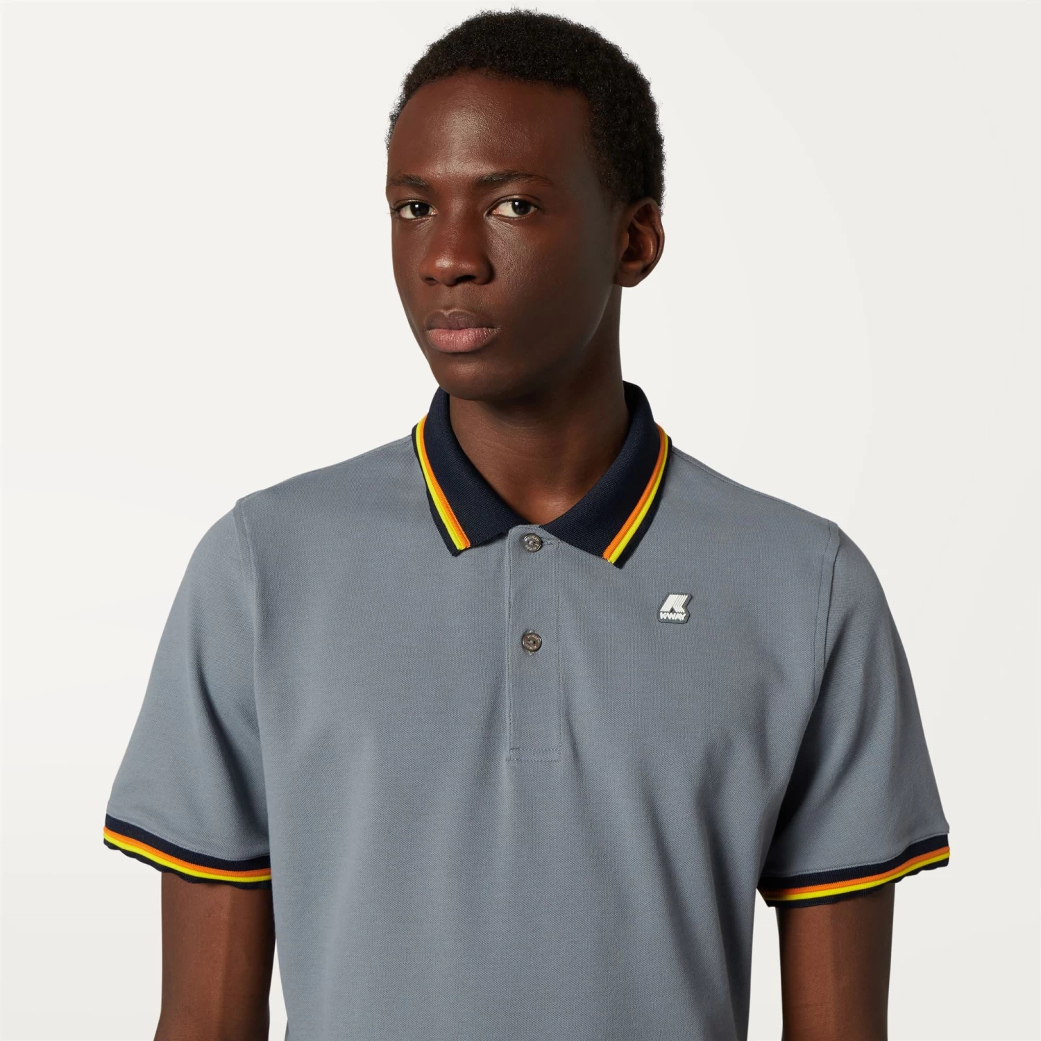 Vincent men’s short-sleeved polo shirt made from cotton piqué, featuring a contrast collar and cuffs with striped trims inspired by K-Way’s signature tape. Its slim contemporary fit is enhanced with side slits for maximum freedom of movement.
